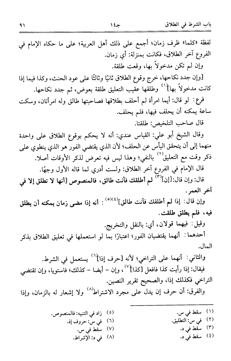 فيقال: إذا رأيت كذا فافعل [كذا]، وإن- أيضاً- كذلك؛ فاستويا، وإن تقتضي التراخي فكذلك إذا، والصحيح تقرير النصين.