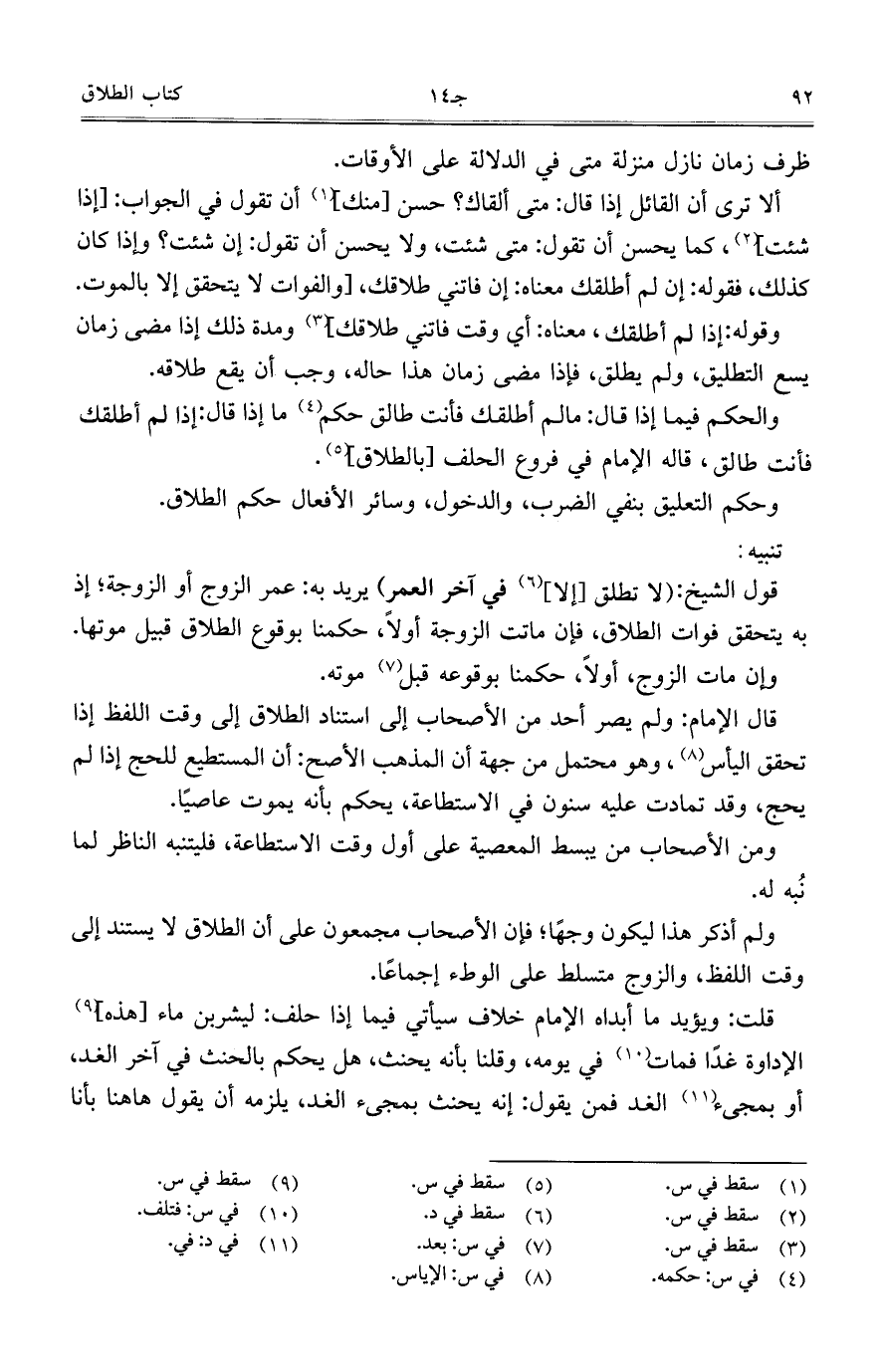 قول الشيخ: (لا تطلق [إلا] في آخر العمر) يريد به: عمر الزوج أو الزوجة؛ إذ به يتحقق فوات الطلاق، فإن ماتت الزوجة أولاً، حكمنا بوقوع الطلاق قبيل موتها.