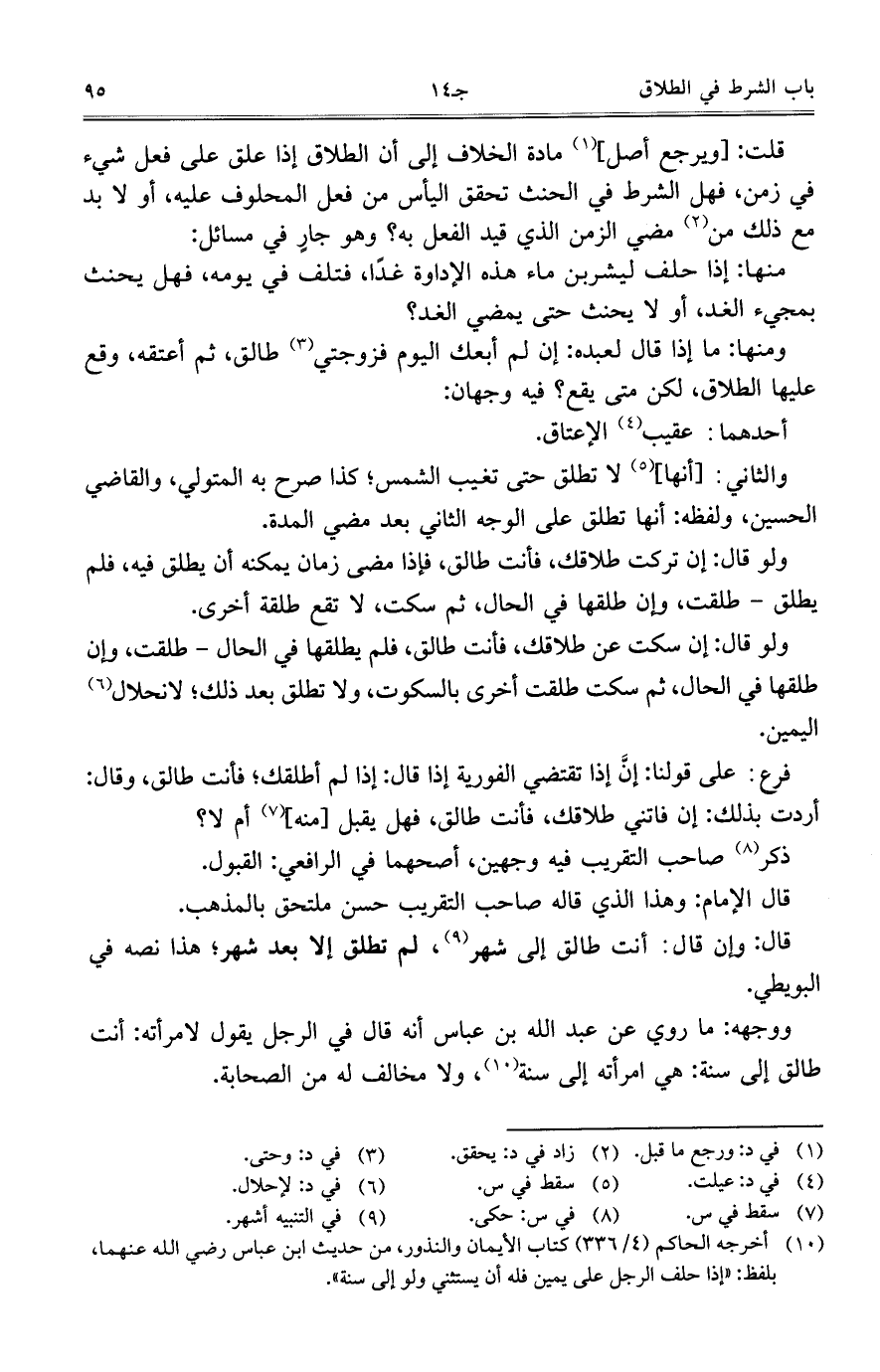 قلت: [ويرجع أصل] مادة الخلاف إلى أن الطلاق إذا علق على فعل شيء في زمن، فهل الشرط في الحنث تحقق اليأس من فعل المحلوف عليه، أو لابد مع ذلك من مضي الزمن الذي قيد الفعل به؟ وهو جارٍ في مسائل: