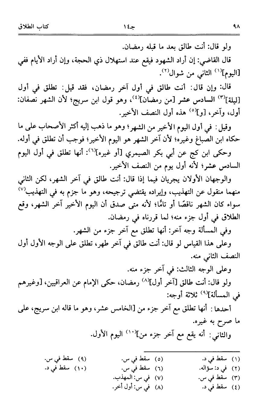 قال القاضي: إن أراد الشهود فيقع عند استهلال ذي الحجة، وإن أراد الأيام ففي [اليوم] الثاني من شوال.