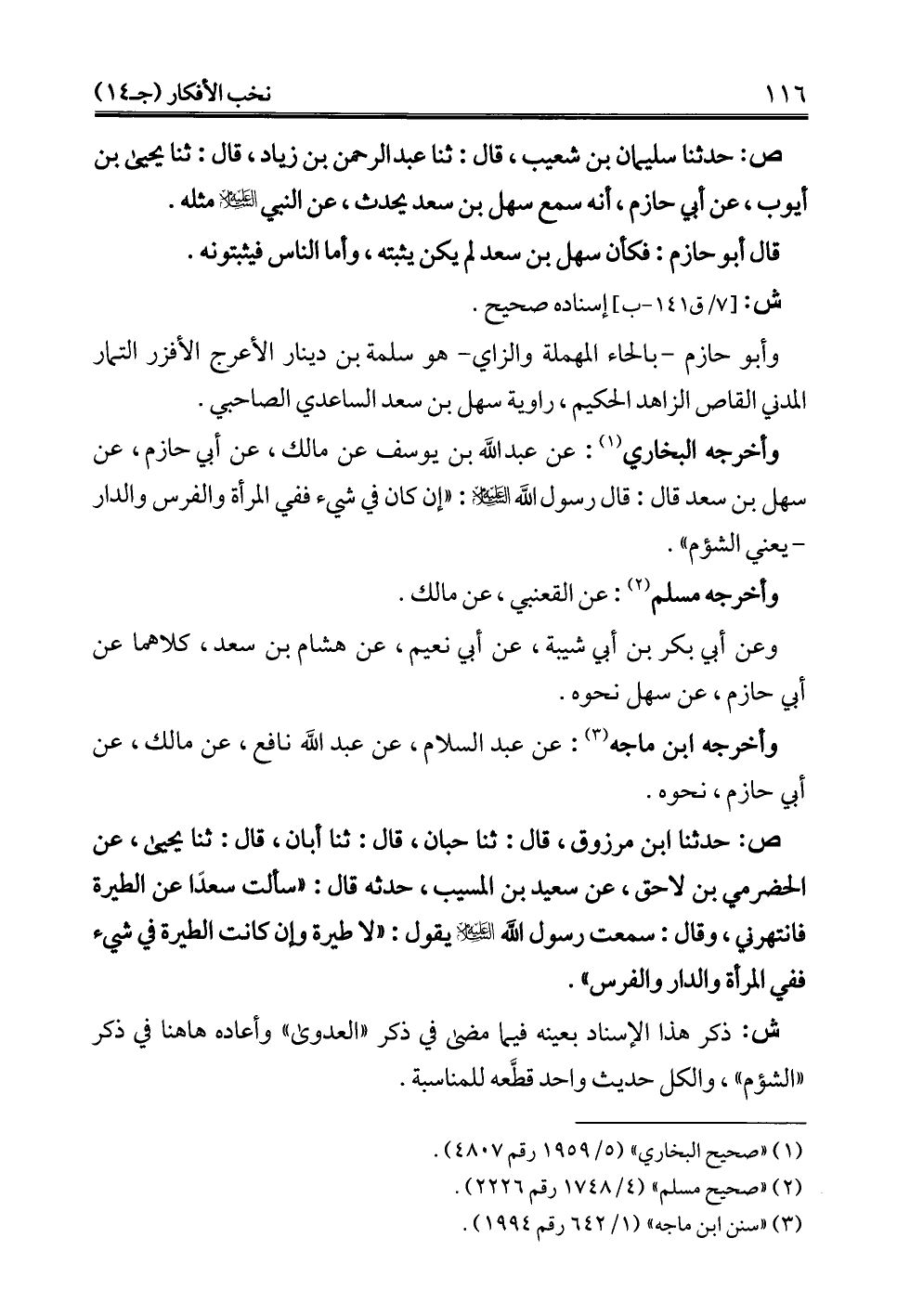 ش: ذكر هذا الإسناد بعينه فيما مضى في ذكر "العدوى" وأعاده هاهنا في ذكر "الشؤم"، والكل حديث واحد قطَّعه للمناسبة.