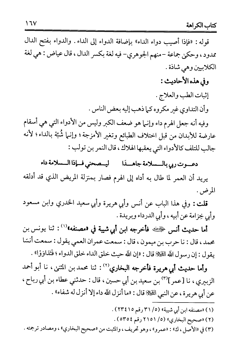 وأن التداوي غير مكروه كما ذهب إليه بعض الناس.