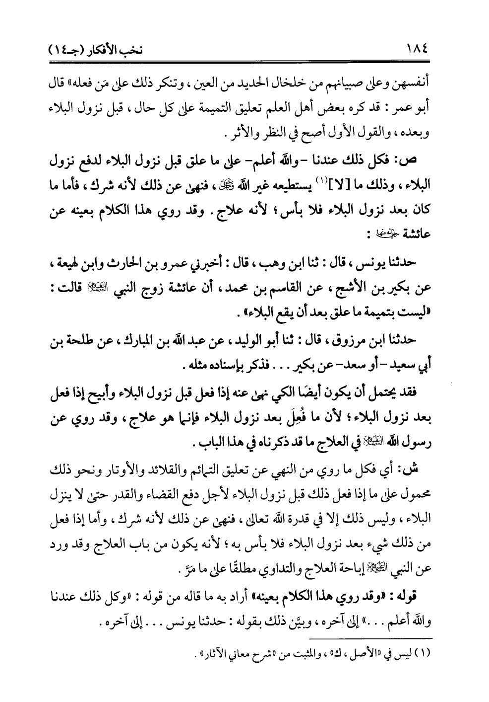 كتاب نخب الأفكار في تنقيح مباني الأخبار في شرح معاني الآثار (اسم الجزء: 14)