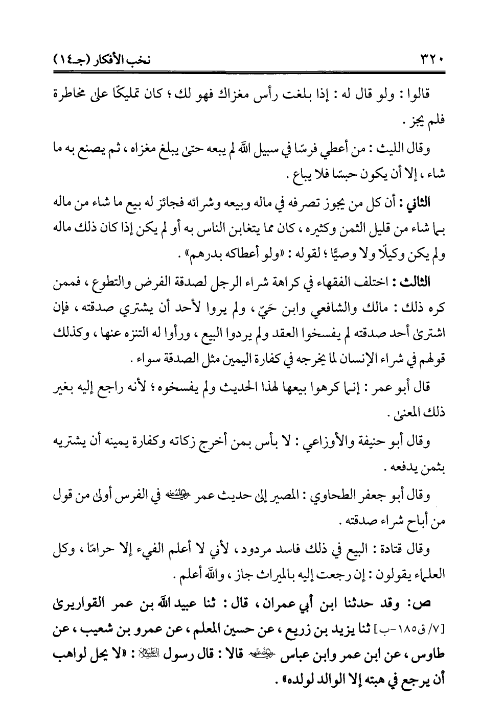 كتاب نخب الأفكار في تنقيح مباني الأخبار في شرح معاني الآثار (اسم الجزء: 14)