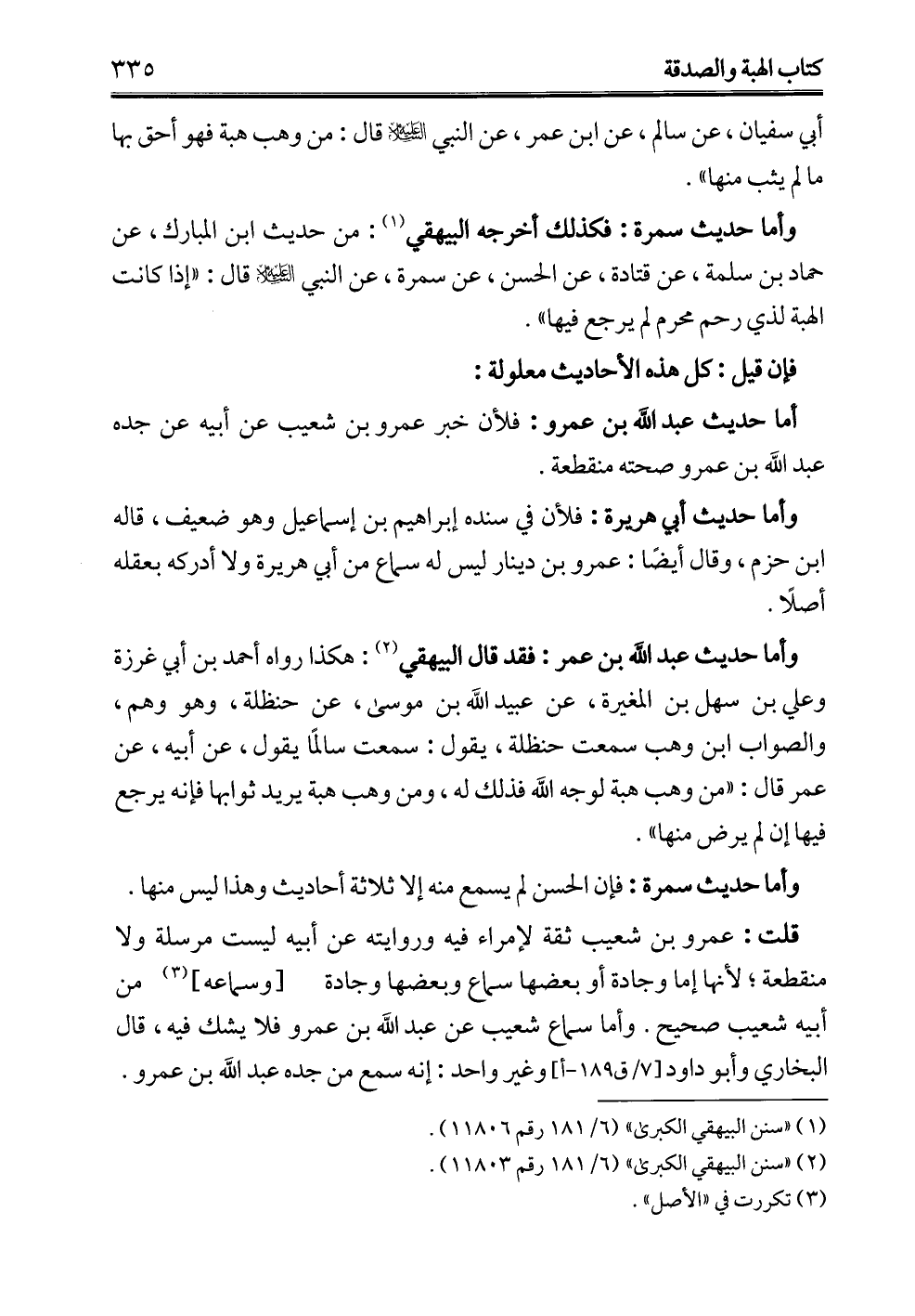 (¬1) "سنن البيهقي الكبرى" (6/ 181 رقم 11806).