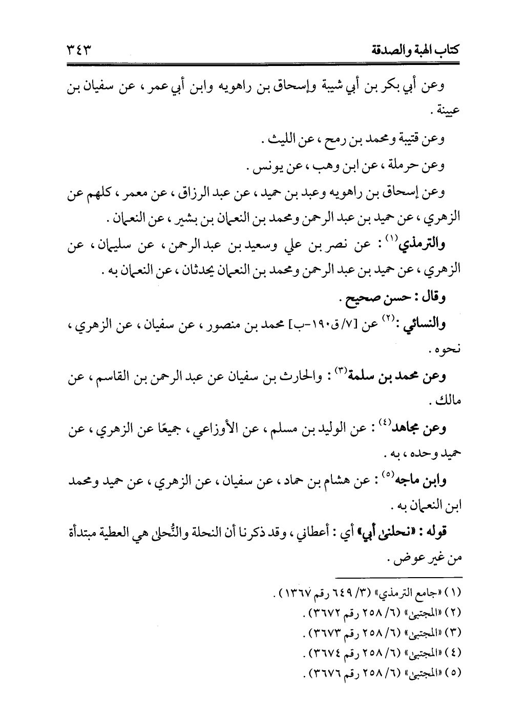 وابن ماجه (¬5): عن هشام بن حماد، عن سفيان، عن الزهري، عن حميد ومحمد بن النعمان به.