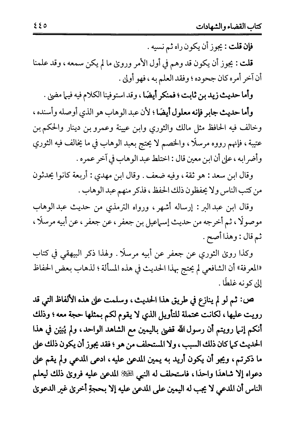 وأما حديث جابر فإنه معلول أيضًا؛ لأن عبد الوهاب هو الذي أوصله وأسنده، وخالف فيه الحافظ مثل مالك والثوري وابن عيينة وعمرو بن دينار والحكم بن عتيبة، فإنهم رووه مرسلًا، والخصم لا يحتج بعبد الوهاب في ما يخالف فيه الثوري وأضرابه، على أن ابن معين قال: اختلط عبد الوهاب في آخر عمره.