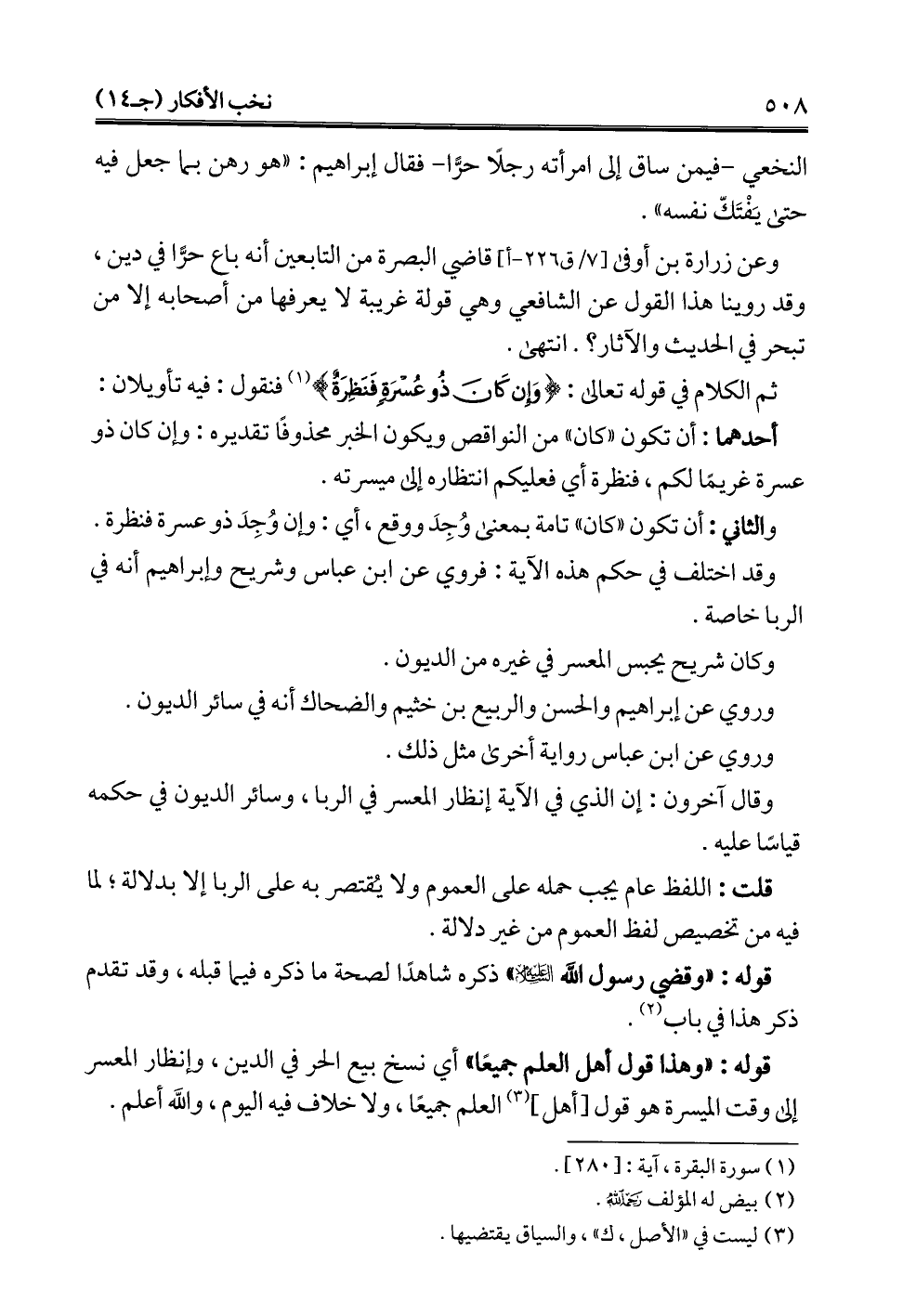كتاب نخب الأفكار في تنقيح مباني الأخبار في شرح معاني الآثار (اسم الجزء: 14)
