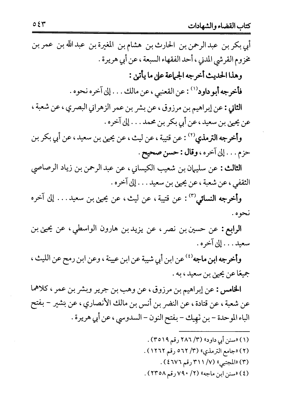 وأخرجه الترمذي (¬2): عن قتيبة، عن ليث، عن يحيى بن سعيد، عن أبي بكر بن حزم. . . . إلى آخره، وقال: حسن صحيح.