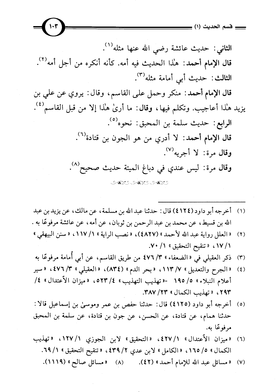 (¬2) "العلل رواية عبد اللَّه لأحمد" (4827)، "نصب الراية" 1/ 117، "سنن البيهقي" 1/ 17، "تنقيح التحقيق" 1/ 70.