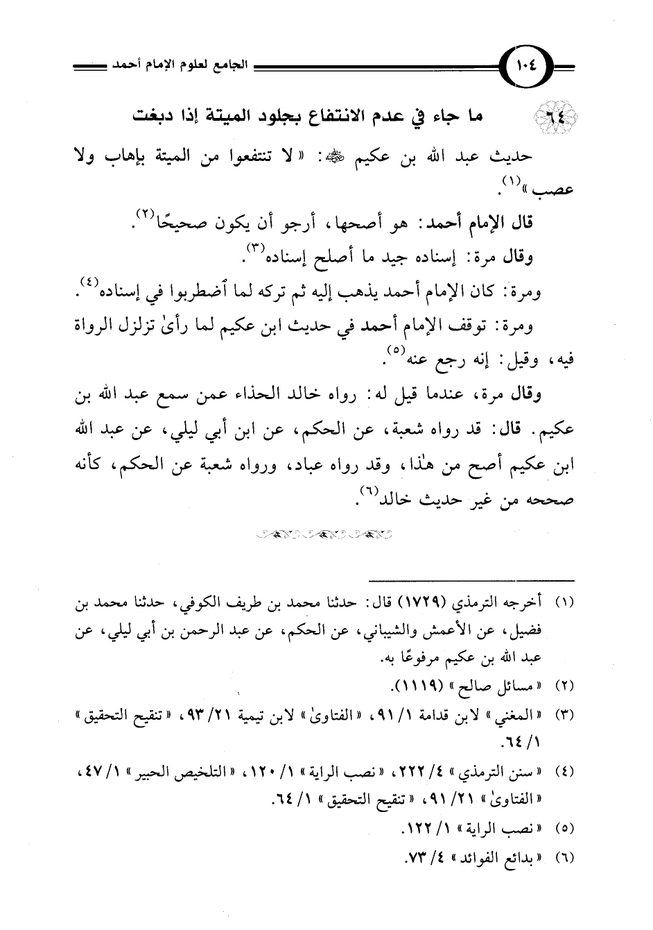 (¬4) "سنن الترمذي" 4/ 222، "نصب الراية" 1/ 120، "التلخيص الحبير" 1/ 47، "الفتاوى" 21/ 91، "تنقيح التحقيق" 1/ 64.