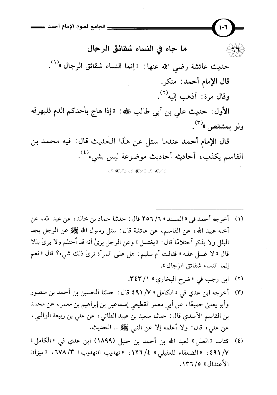 حديث عائشة رضي اللَّه عنها: "إنما النساء شقائق الرجال " (¬1).