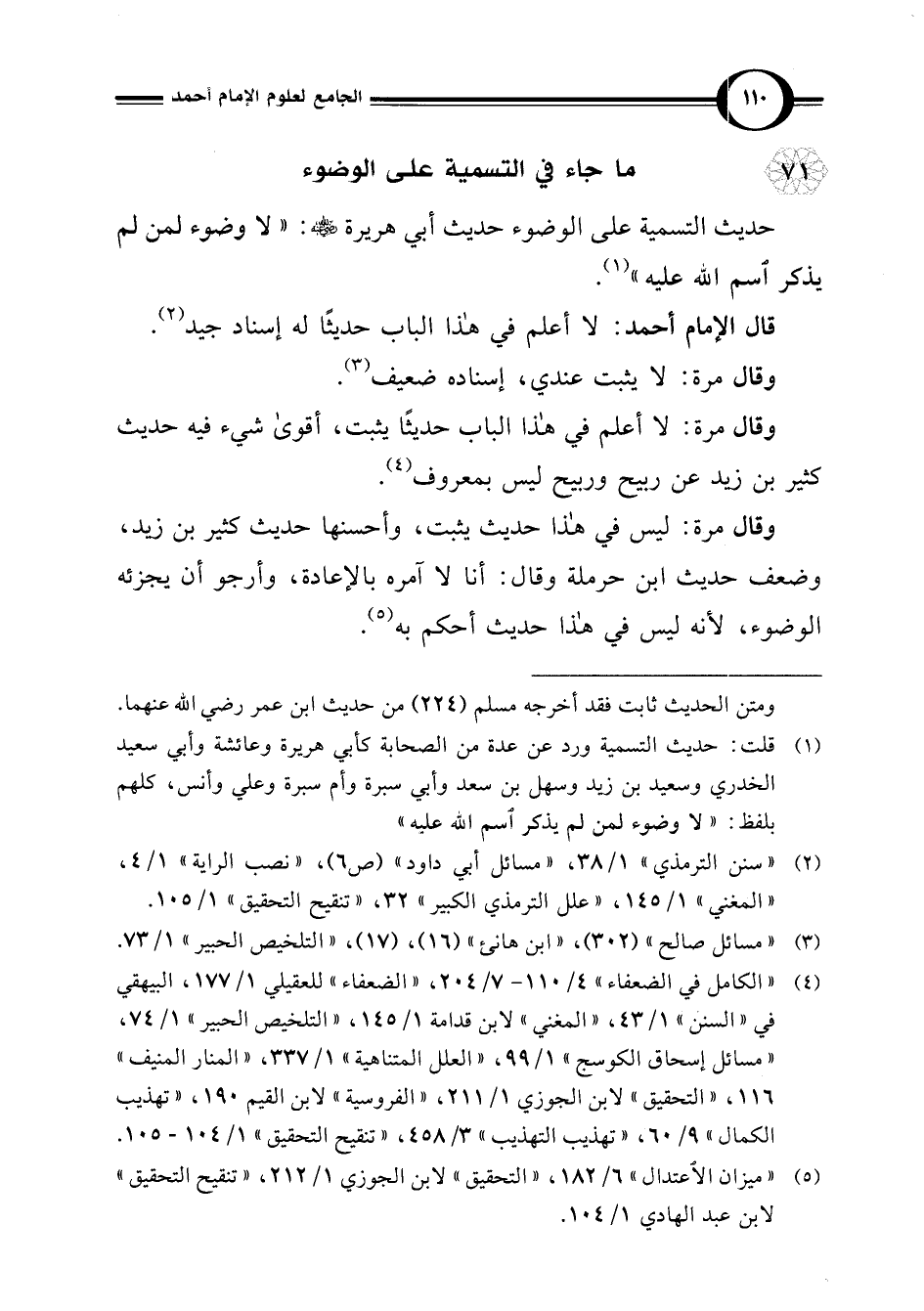 (¬2) "سنن الترمذي" 1/ 38، "مسائل أبي داود" (ص 6)، "نصب الراية" 1/ 4، "المغني" 1/ 145، "علل الترمذي الكبير" 32، "تنقيح التحقيق" 1/ 105.