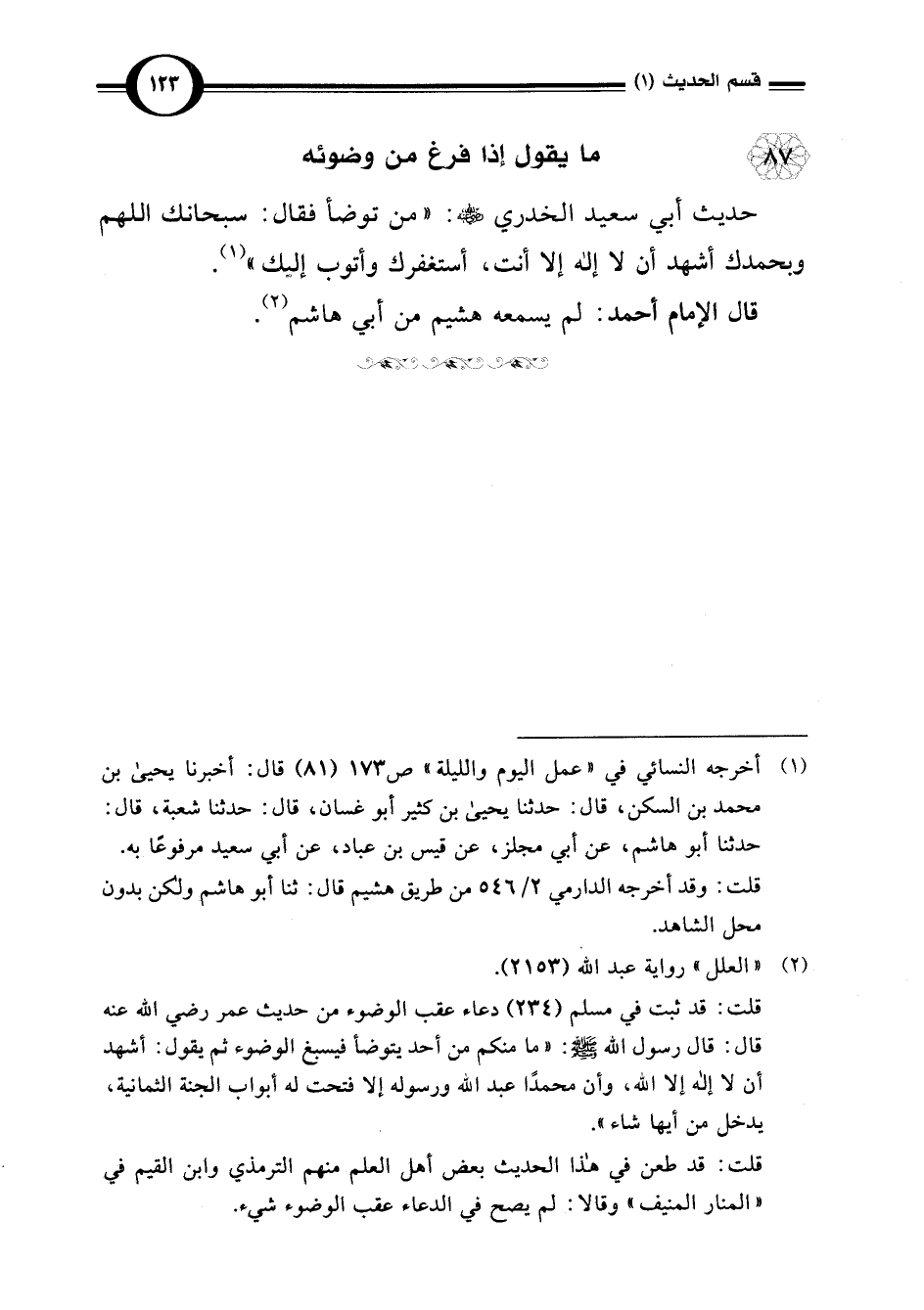 87 - ما يقول إذا فرغ من وضوئه