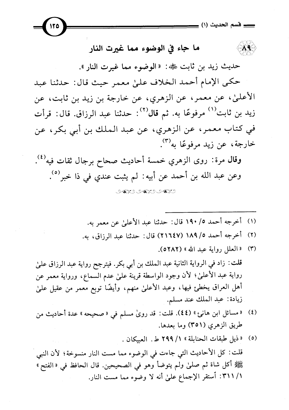 حديث زيد بن ثابت -رضي اللَّه عنه-: "الوضوء مما غيرت النار".