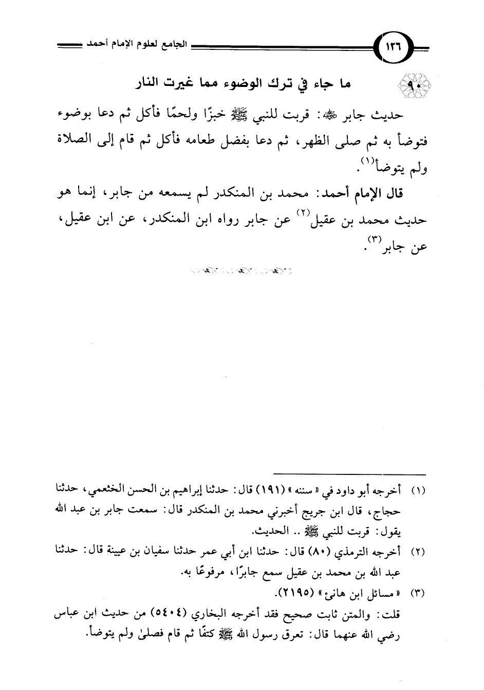 قال الإمام أحمد: محمد بن المنكدر لم يسمعه من جابر، إنما هو حديث محمد بن عقيل (¬2) عن جابر رواه ابن المنكدر، عن ابن عقيل، عن جابر (¬3).