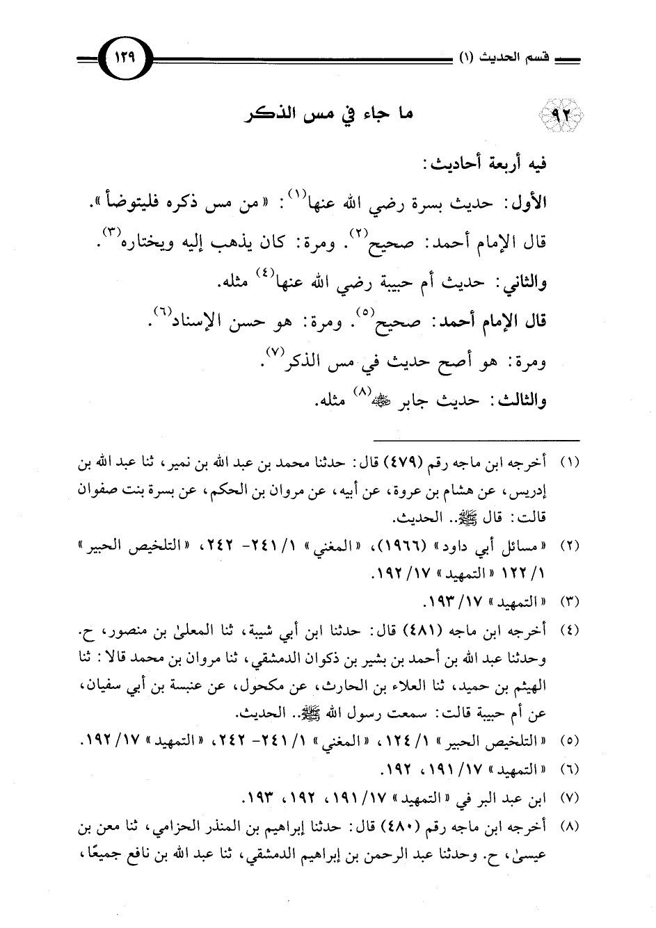 (¬5) "التلخيص الحبير" 1/ 124، "المغني" 1/ 241 - 242، "التمهيد" 17/ 192.