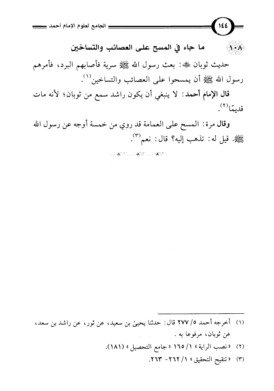 108 - ما جاء في المسح على العصائب والتساخين