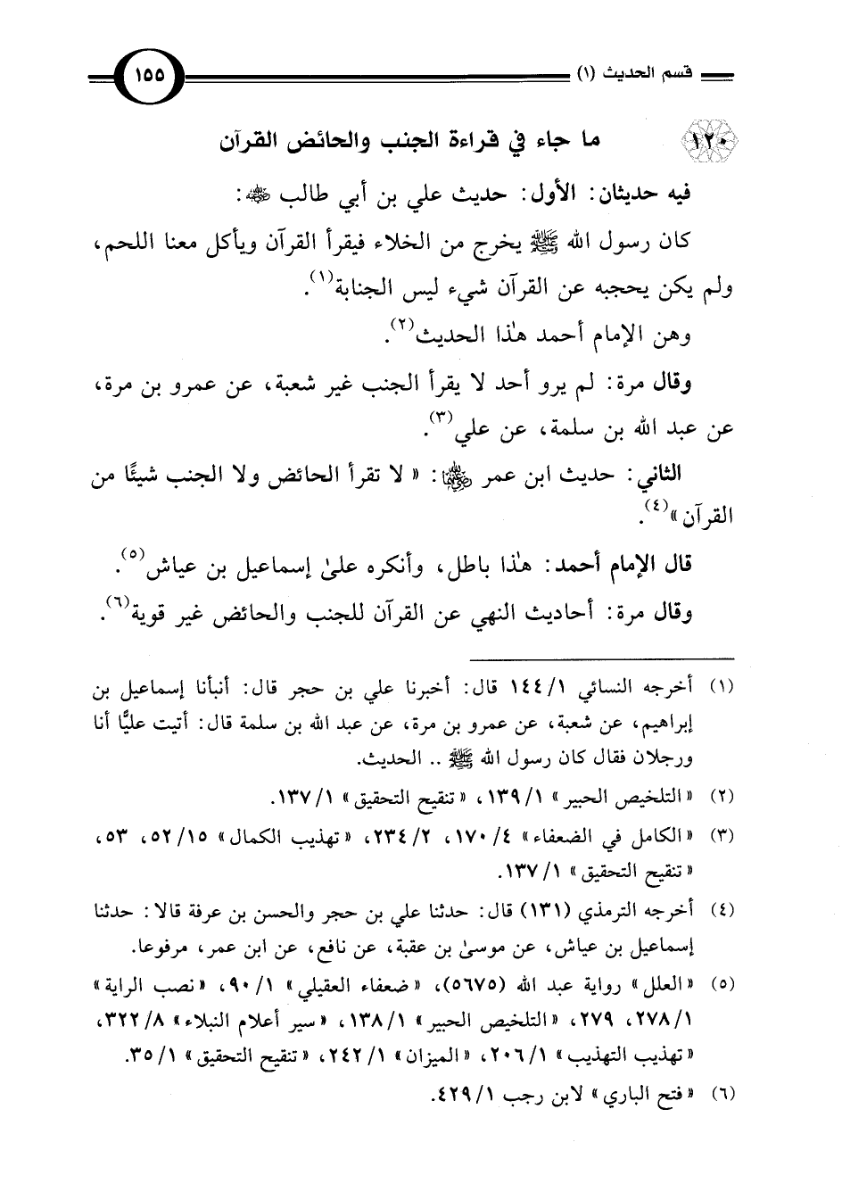 (¬2) "التلخيص الحبير" 1/ 139، "تنقيح التحقيق" 1/ 137.