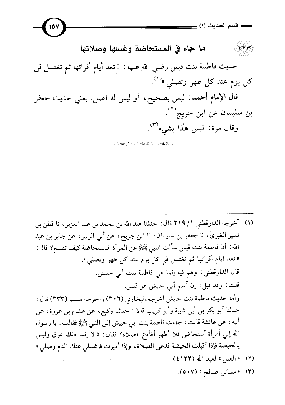 123 - ما جاء في المستحاضة وغسلها وصلاتها