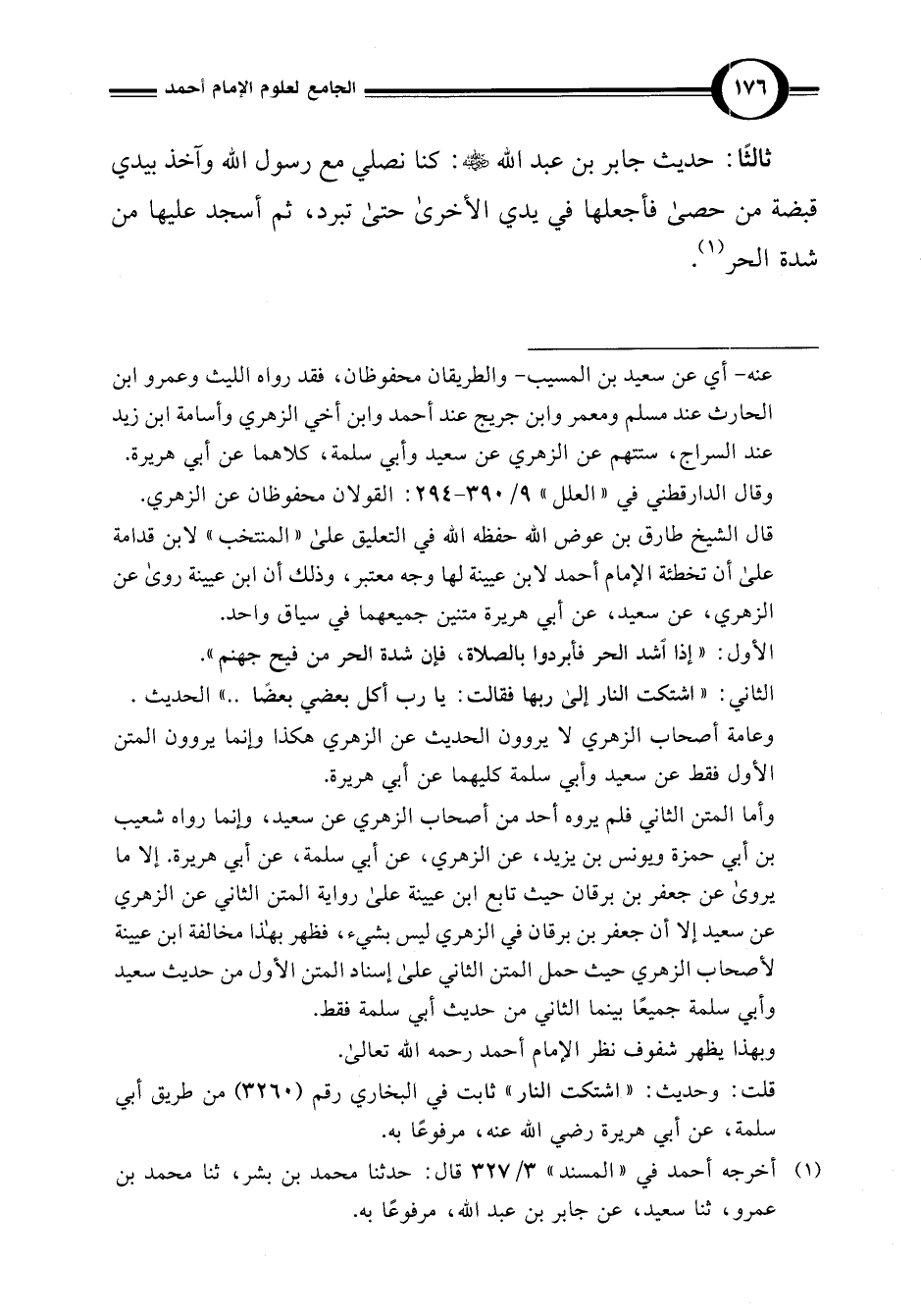 قال الشيخ طارق بن عوض اللَّه حفظه اللَّه في التعليق على "المنتخب" لابن قدامة على أن تخطئة الإمام أحمد لابن عيينة لها وجه معتبر، وذلك أن ابن عيينة روى عن الزهري، عن سعيد، عن أبي هريرة متنين جميعهما في سياق واحد.