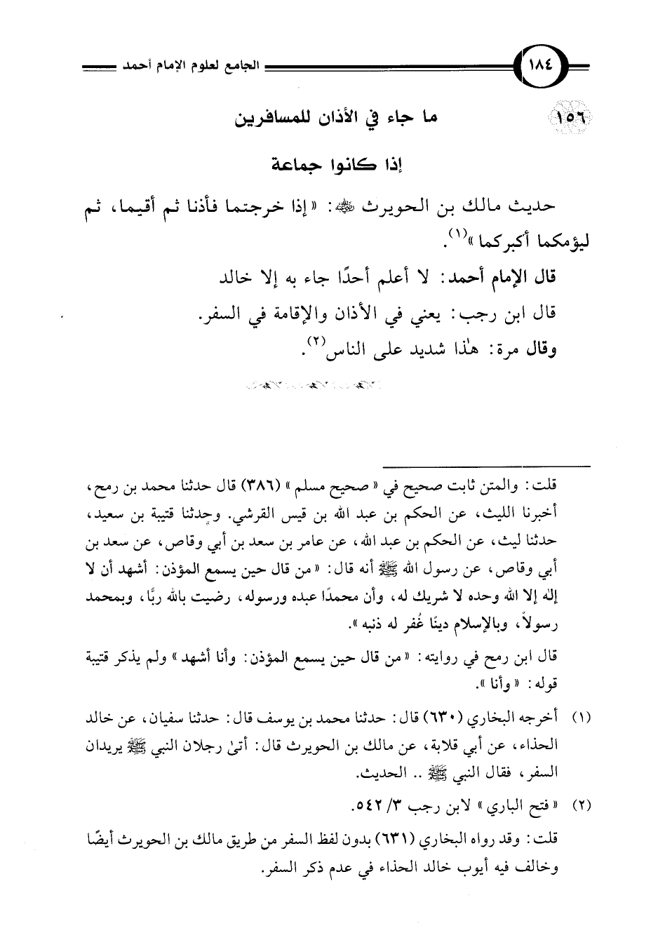 156 - ما جاء في الأذان للمسافرين إذا كانوا جماعة