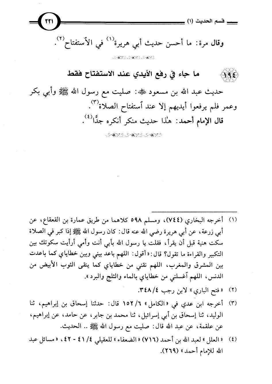 194 - ما جاء في رفع الأيدي عند الاستفتاح فقط