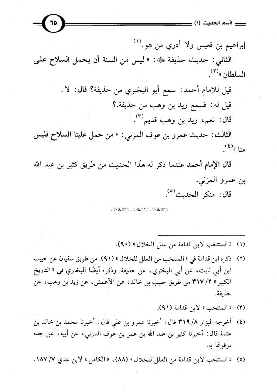(¬5) "المنتخب لابن قدامة من العلل للخلال" (88)، "الكامل" لابن عدي 7/ 187.