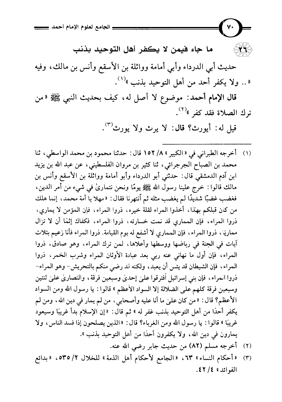 (¬3) "أحكام النساء" 63، "الجامع لأحكام أهل الذمة" للخلال 2/ 535، "بدائع الفوائد" 4/ 42.