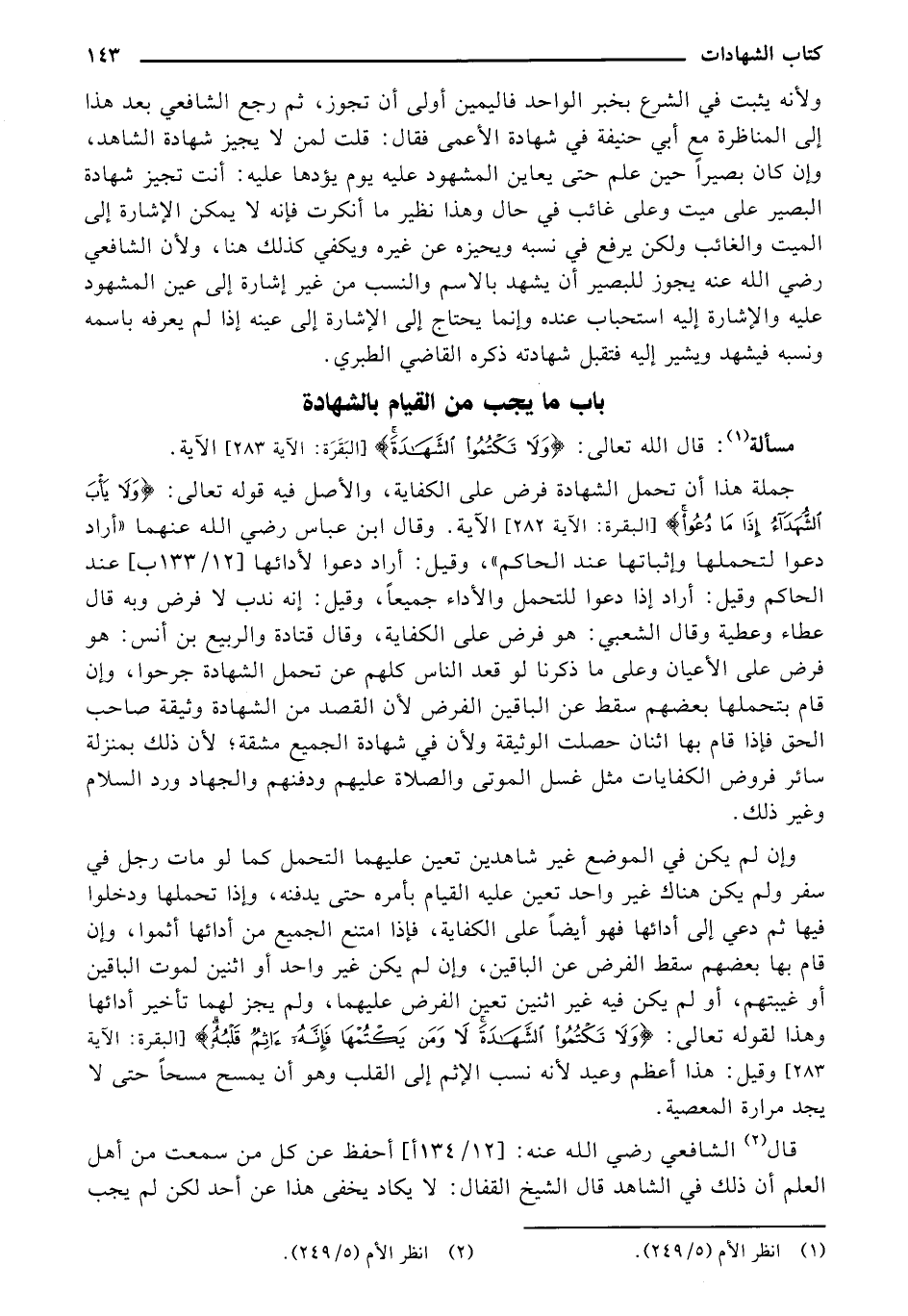 باب ما يجب من القيام بالشهادة