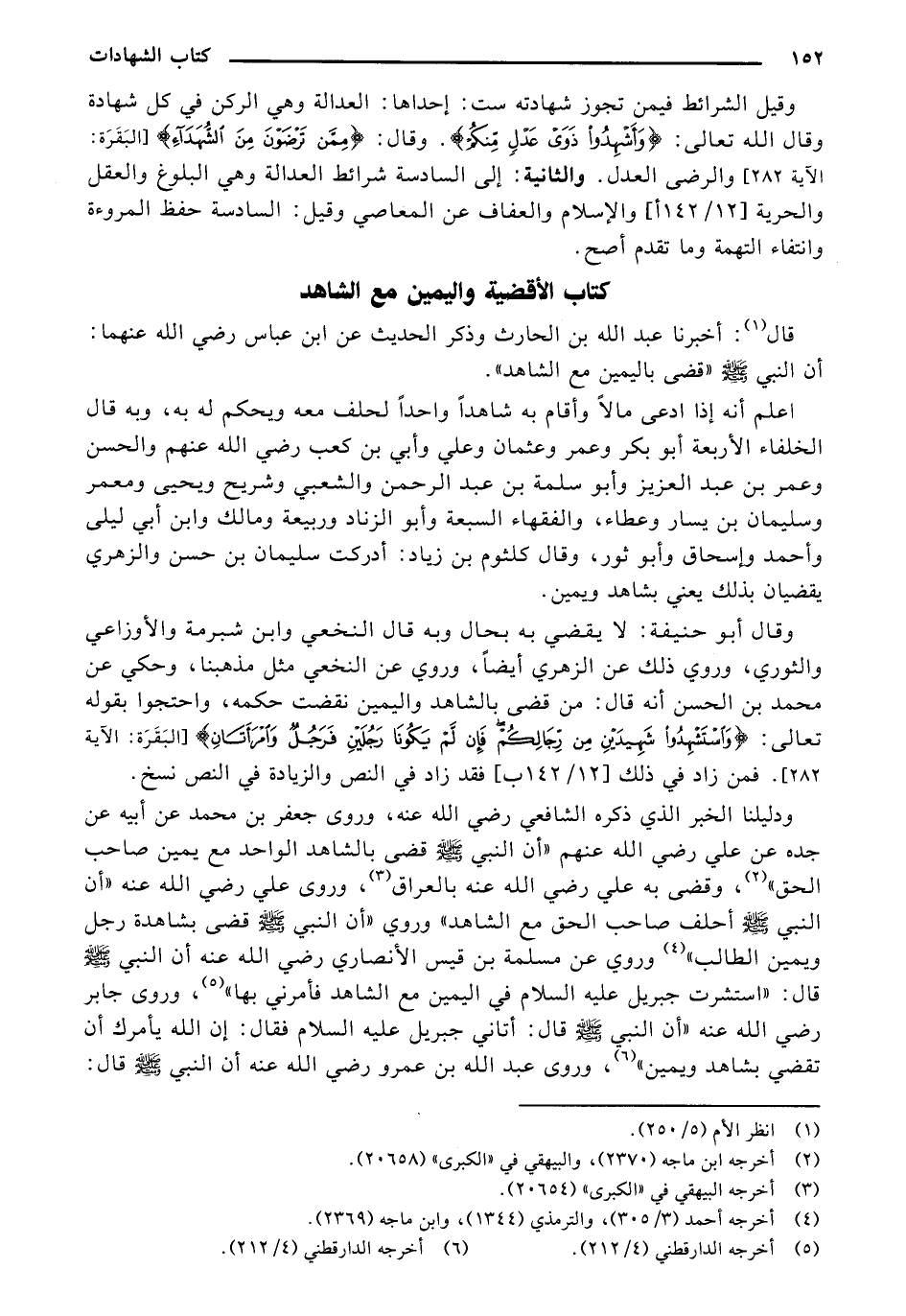 ودليلنا الخبر الذي ذكره الشافعي رضي الله عنه، وروى جعفر بن محمد عن أبيه عن جده عن علي رضي الله عنهم "أن النبي صلى الله عليه وسلم قضى بالشاهد الواحد مع يمين صاحب الحق"، وقضى به علي رضي الله عنه بالعراق، وروي علي رضي الله عنه "أن النبي صلى الله عليه وسلم أحلف صاحب الحق مع الشاهد" وروي "أن النبي صلى الله عليه وسلم قضى بشاهدة رجل ويمين الطالب" وروي عن مسلمة بن قيس الأنصاري رضي الله عنه أن النبي صلى الله عليه وسلم قال: استشرت جبريك عليه السلام في اليمين مع الشاهد فأمرني بها"، وروي جابر رضي الله عنه "أن النبي صلى الله عليه وسلم قال: أتاني جبريل عليه السلام فقال: إن الله يأمرك أن تقضي بشاهد ويمين"، وروي عبد الله بن عمرو رضي الله عنه أن النبي صلى الله عليه وسلم قال: