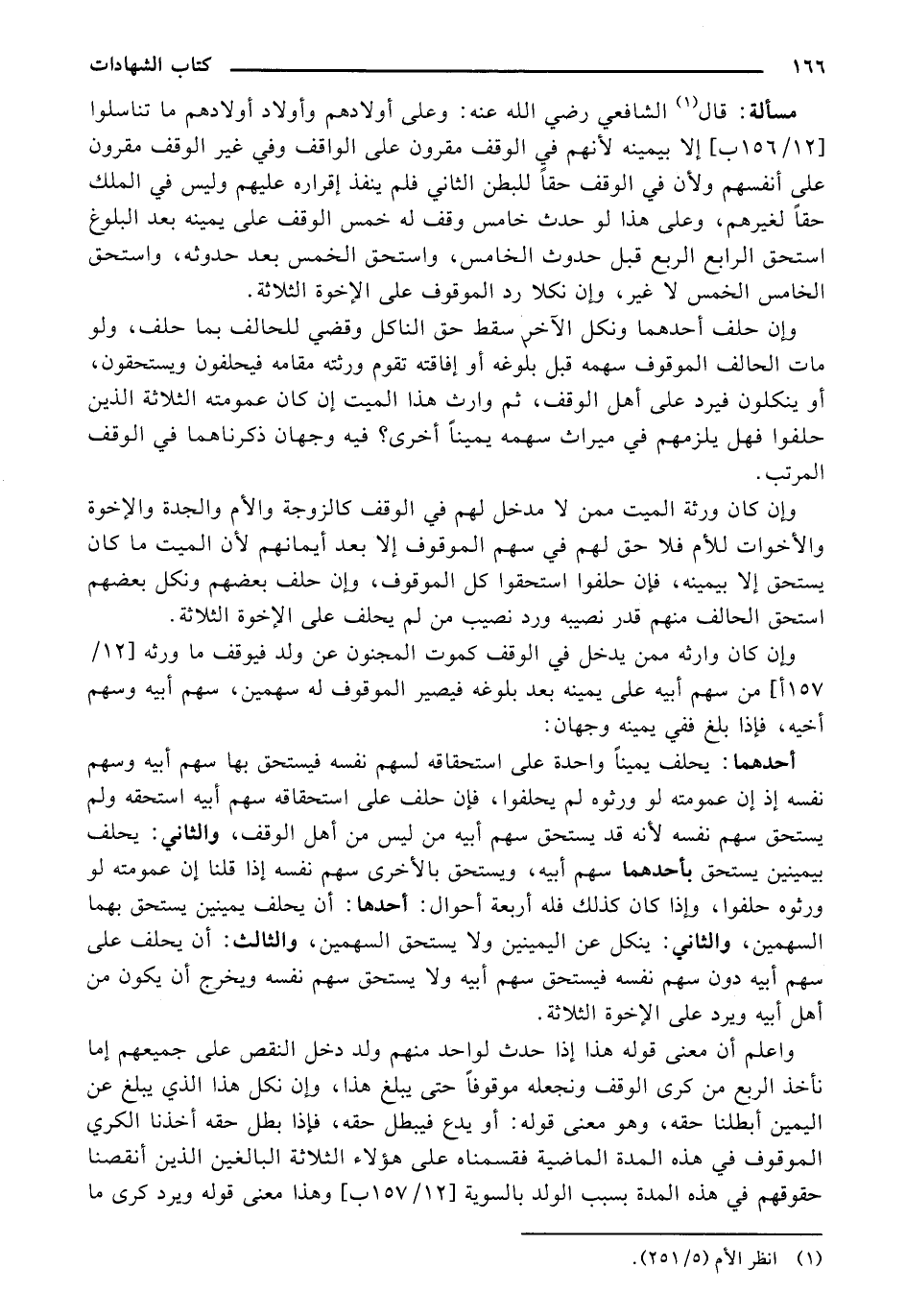 مسألة: قال الشافعي رضي الله عنه: وعلى أولادهم وأولاد أولادهم ما تناسلوا [12/ 156 ب] إلا بيمينه في الوقف مقرون على الواقف وفي غير الوقف مقرون على أنفسهم ولأن في الوقف حقًا للبطن الثاني فلم ينفذ إقراره عليهم وليس في الملك حقًا لغيرهم، وعلى هذا لو حدث خامس وقف له خمس الوقف علي يمينه بعد البلوغ استحق الرابع الربع قبل حدوث الخامس، واستحق الخمس بعد حدوثه، واستحق الخامس الخمس لا غير، وإن نكلا رد الموقوف على الإخوة الثلاثة.