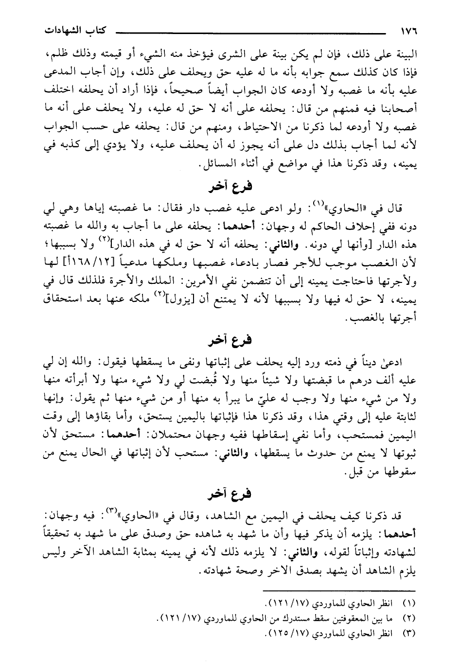البينة على ذلك، فإن لم يكن بينة على الشري فيؤخذ منه الشيء أو قيمته وذلك ظلم، فإذا كان كذلك سمع جوابه بأنه ما له عليه حق ويحلف على ذلك، وإن أجاب المدعي عليه بأنه ما غصبه ولا أودعه كان الجواب أيضًا صحيحًا، فإذا أراد أن يحلفه اختلف أصحابنا فيه فمنهم من قال: يحلفه على أنه لا حق له عليه، ولا يحلف على أنه ما غصبه ولا أودعه لما ذكرنا من الاحتياط، ومنهم من قال: يحلفه على حسب الجواب لأنه لما أجاب بذلك دل على أنه يجوز له أن يحلف عليه، ولا يؤدي إلى كذبه في يمينه، وقد ذكرنا هذا في مواضع في أثناء المسائل.