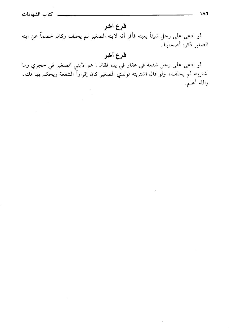 لو ادعى على رجل شفعة في عقار في يده فقال: هو لابني الصغير في حجري وما اشتريته لم يحلف، ولو قال اشتريته لولدي الصغير كان إقرارًا الشفعة ويحكم بها لك. والله أعلم.