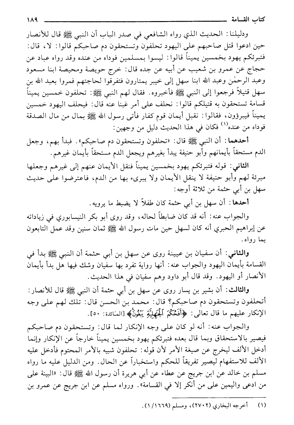 الثاني: قوله فتبرئكم يهود بخمسين يمينًا فنقل الأيمان عنهم إلى غيرهم وجعلها مبرئة لهم وأبو حنيفة لا ينقل الأيمان ولا يبرئ بها من الدم، فاعترضوا على حديث سهل بن أبي حثمة من ثلاثة أوجه: