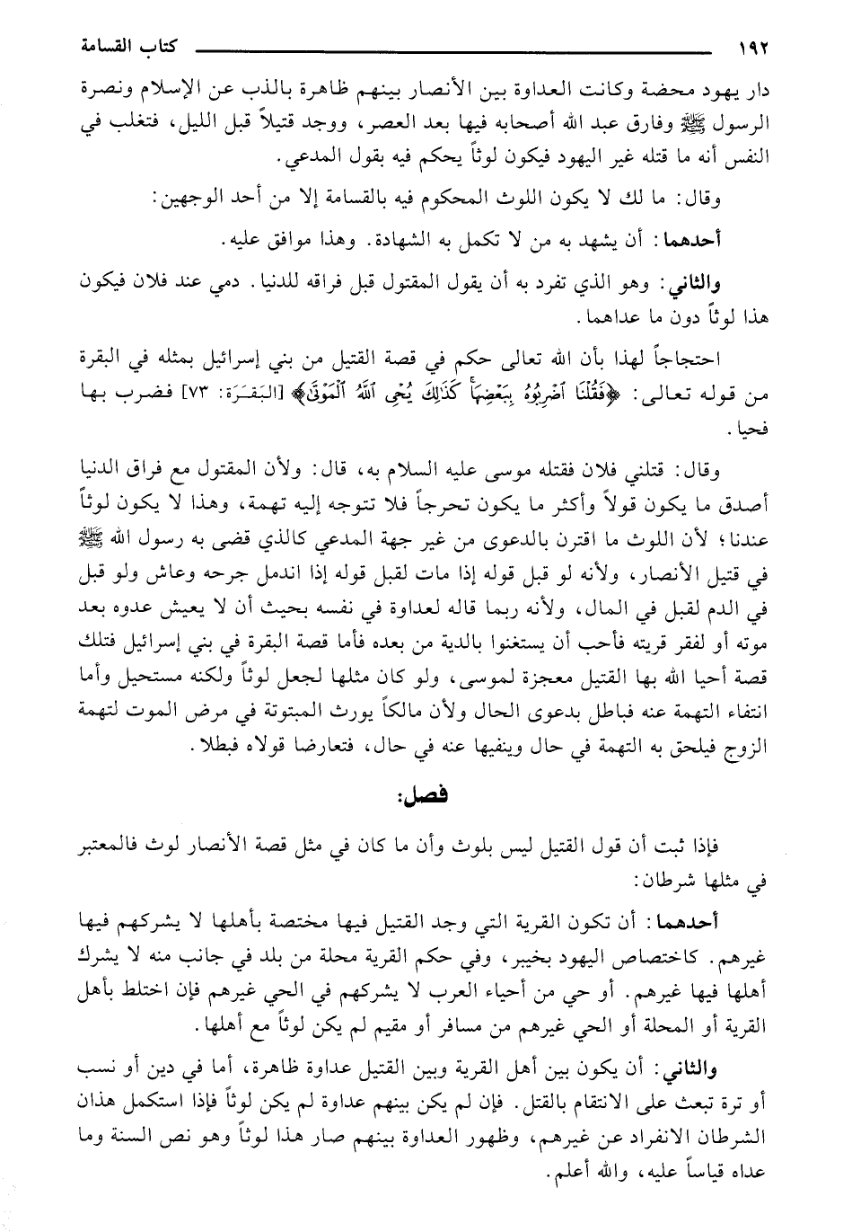 دار يهود محضة وكانت العداوة بين الأنصار بينهم ظاهرة بالذب عن الإسلام ونصرة الرسول صلى الله عليه وسلم وفارق أصحابه فيها بعد العصر، ووجد قتيلًا قبل الليل، فتغلب في النفس أما ما قتله غير اليهود فيكون لوثًا يحكم فيه بقول المدعي.