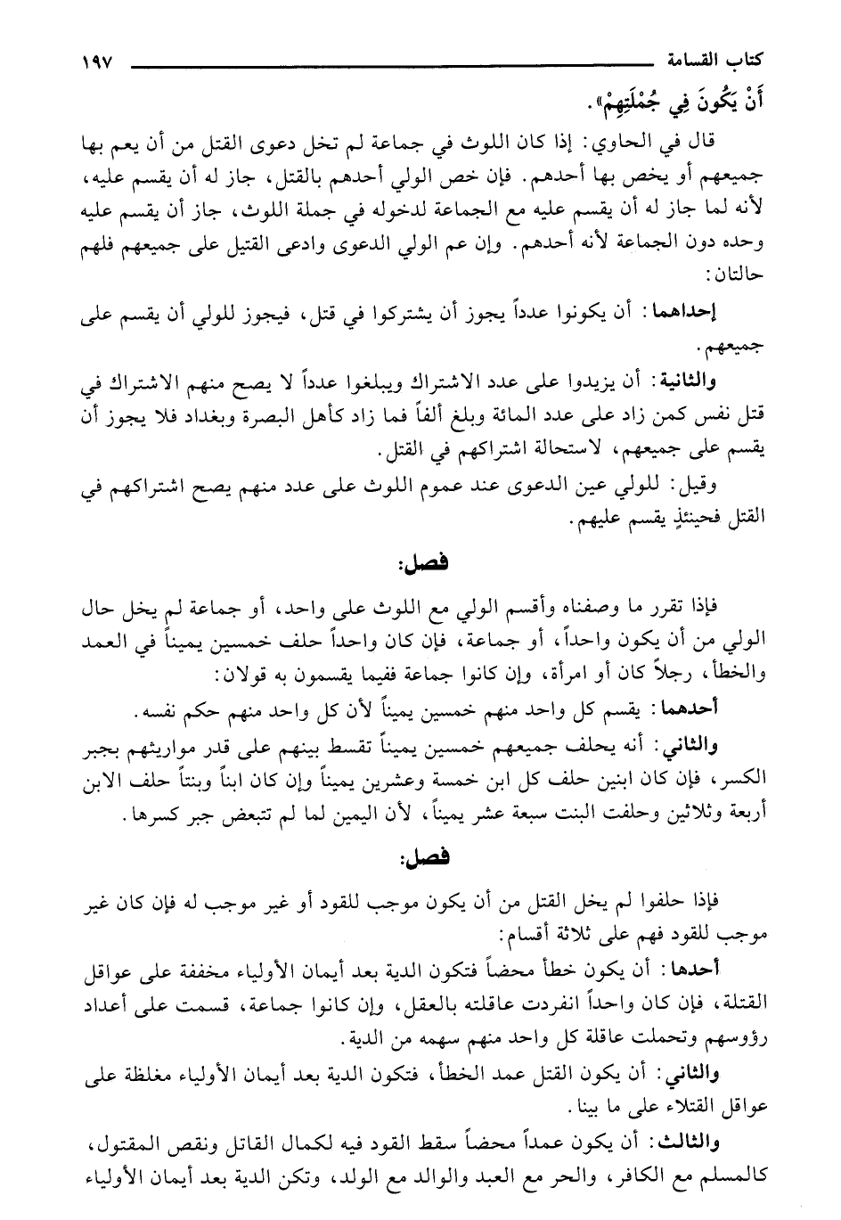 والثانية: أن زيدوا على عدد الاشتراك ويبلغوا عددًا لا يصح منهم الاشتراك في قتل النفس كمن زاد على عدد المائة وبلغ ألفًا فما زاد كأهل البصرة وبغداد فلا يجوز أن يقسم على جميعهم، لاستحالة اشتراكهم في القتل.