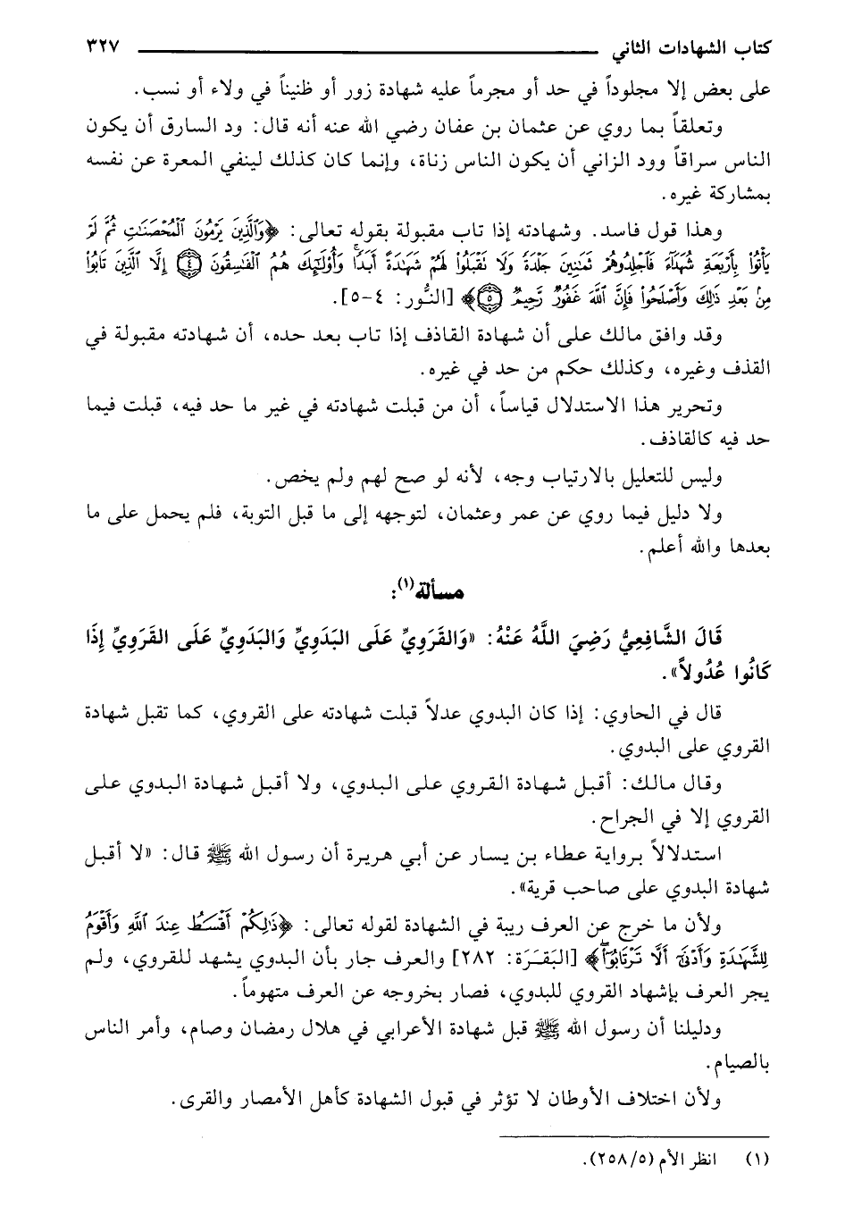 قال الشافعي رضيا الله عنه: " والقروي على البدوي والبدوي على القروي إذا كانوا عدولاً"