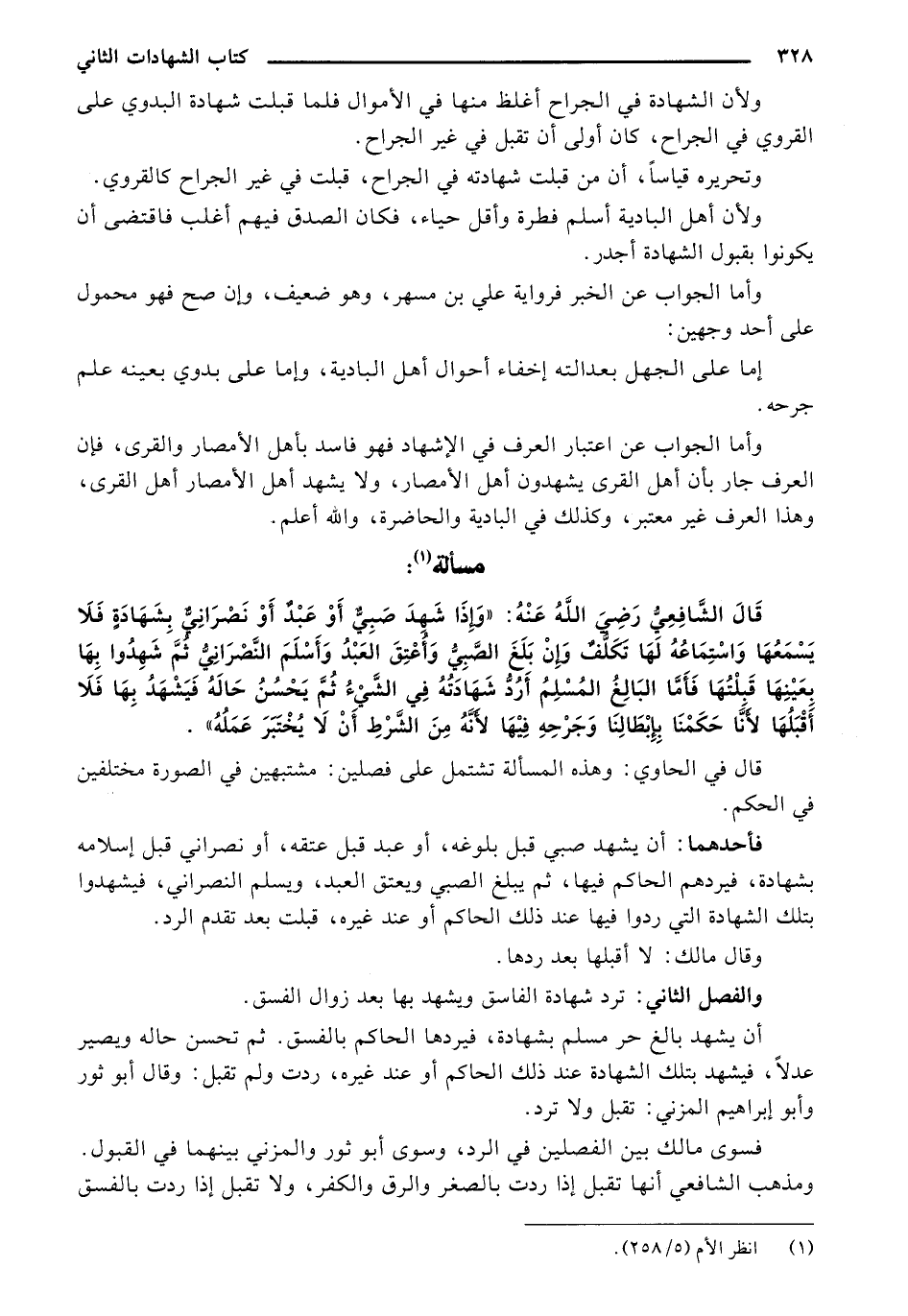 وأما الجواب عن اعتبار العرف في الإشهاد فهو فاسد بأهل الأمصار والقرى فإن العرف جار بأن أهل القرى يشهدون أهل الأمصار ولا يشهد أهل الأمصار أهل القرى وهذا العرف غير معتبر وكذلك في البادية والحاضرة والله أعلم.