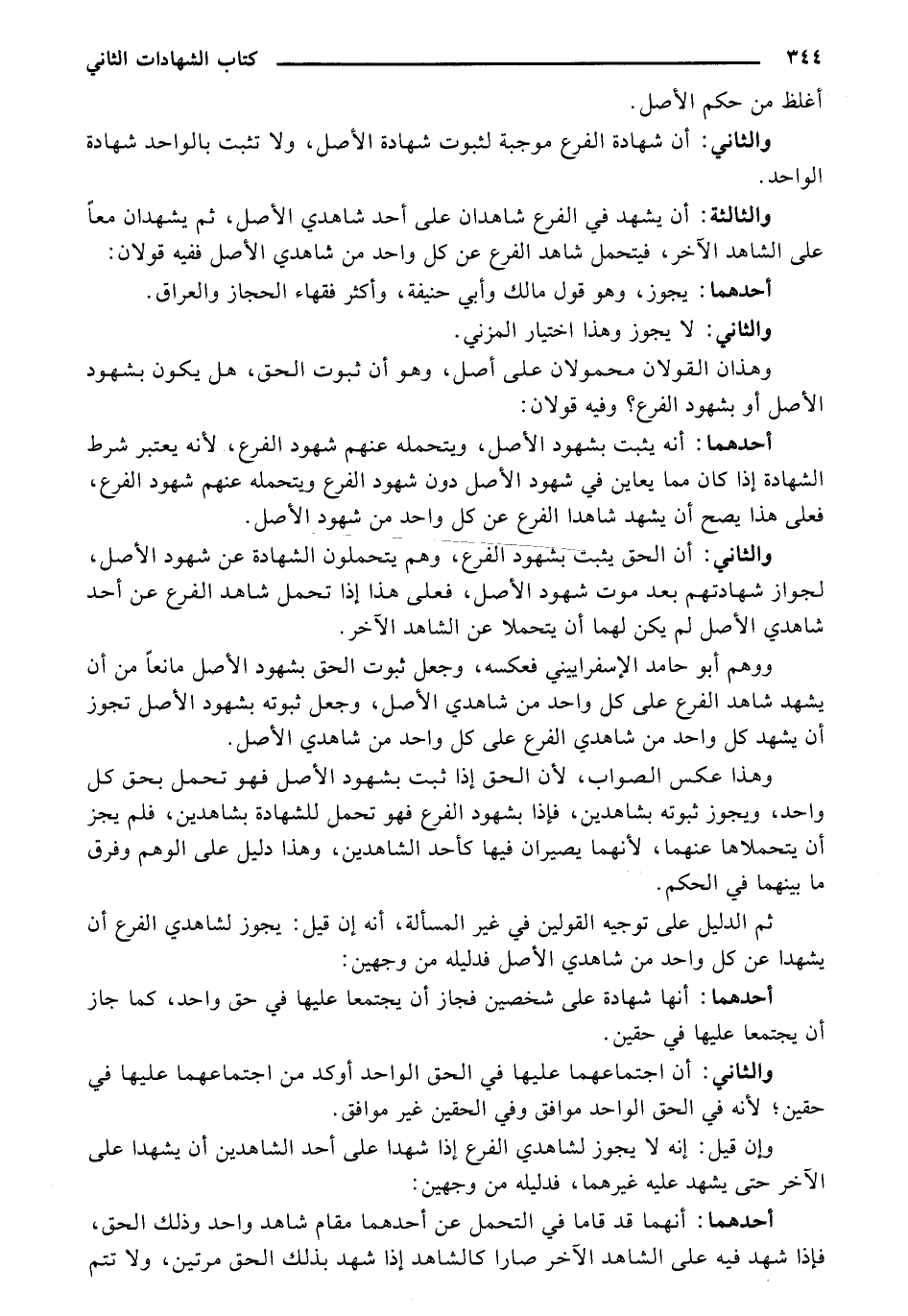 ووهم أبو حامد الإسفراييني فعكسه، وجعل ثبوت الحق بشهود الأصل مانعاً من أن يشهد شاهد الفرع على كل واحد من شاهدي الأصل، وجعل ثبوته بشهود الأصل تجوز أن يشهد كل واحد من شاهدي الفرع على كل واحد من شاهدي الأصل.