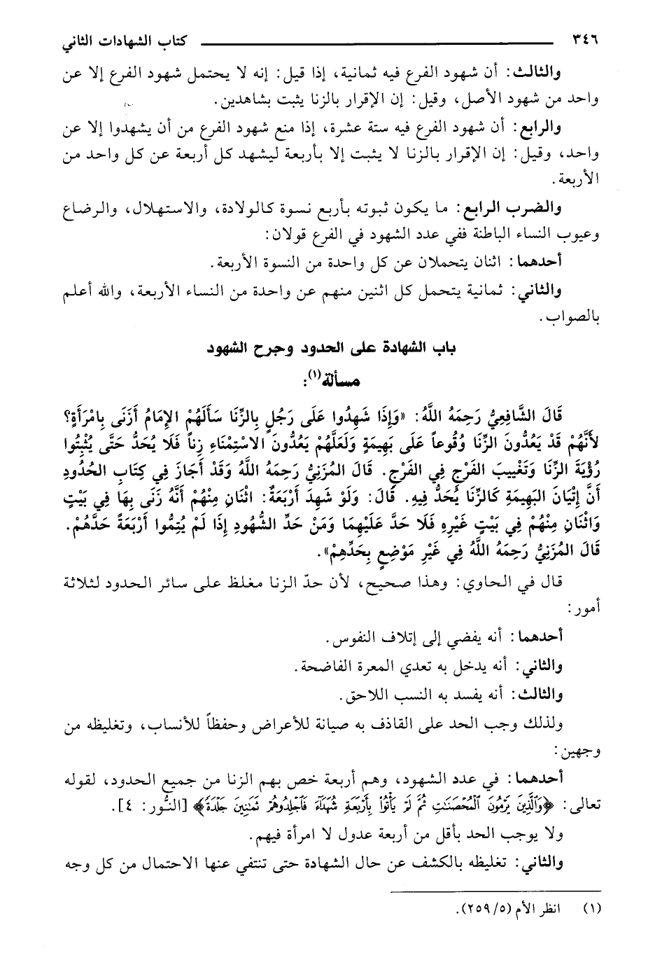 أحدهما: في عدد الشهود وهم أربعة خص بهم الزنا من جميع الحدود لقوله تعالى: {وَالَّذِينَ يَرْمُونَ الْمُحْصَنَاتِ ثُمَّ لَمْ يَاتُوا بِأَرْبَعَةِ شُهَدَاءَ فَاجْلِدُوهُمْ ثَمَانِينَ جَلْدَةً}.