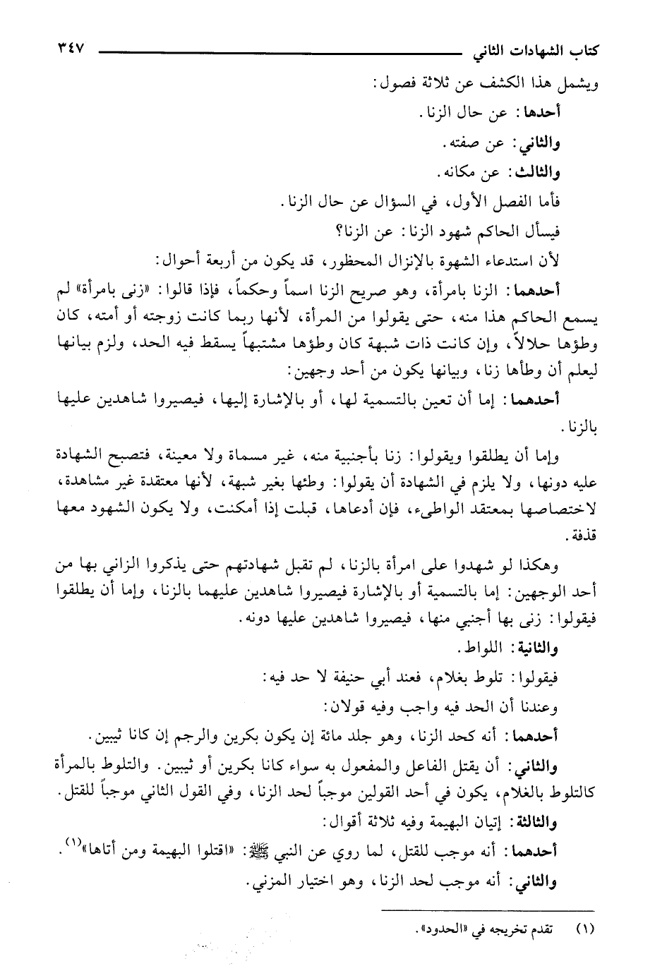 فأما الفصل الأول في السؤال عن حال الزنا.