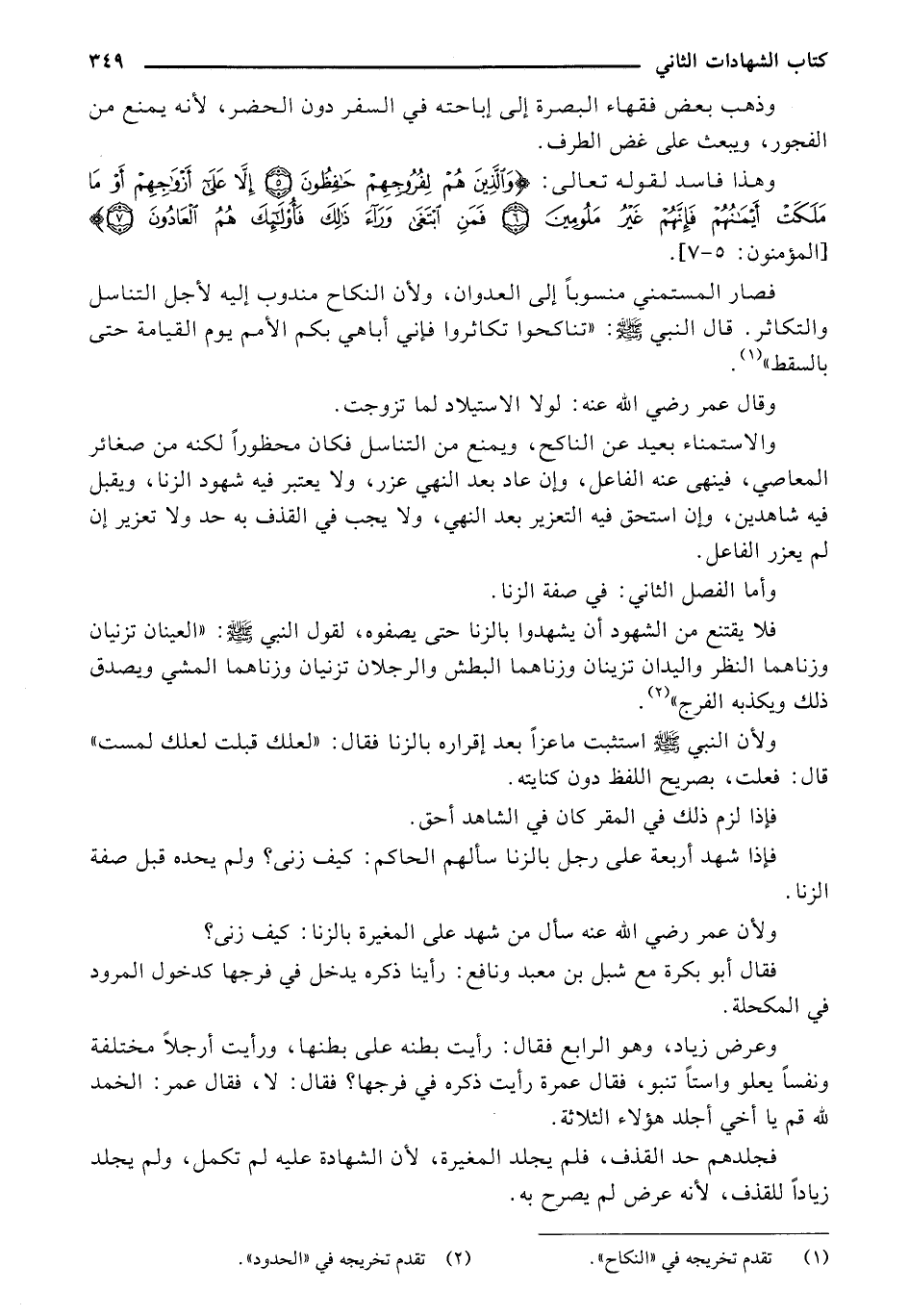 وعرض زياد، وهو الرابع فقال: رأيت بطنه على بطنها، ورأيت أرجلاً مختلفة ونفساً يعلو واستاً تنبو فقال عمرة رأيت ذكره في فرجها؟ فقال لا، فقال عمر: الحمد لله قم يا أخي أجلد هؤلاء الثلاثة.