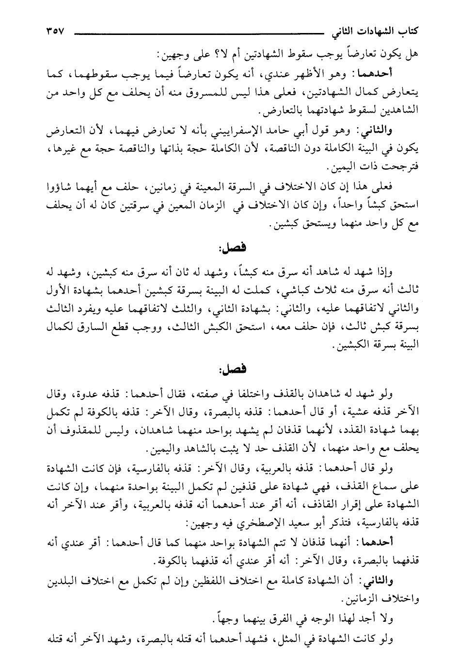 والثاني: أن الشهادة كاملة مع اختلاف اللفظين وإن لم تكمل مع اختلاف البلدين واختلاف الزمانين.