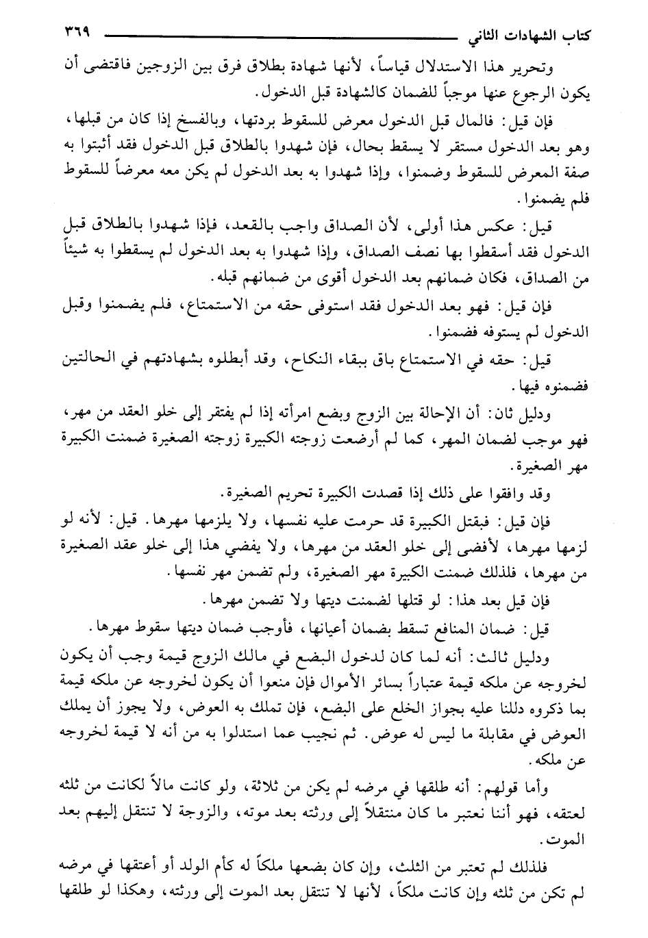 ودليل ثان: أن الإحالة بين الزوج وبضع امرأته إذا لم يفتقر إلي خلو العقد من مهر، فهو موجب لضمان المهر، كما لم أرضعت زوجته الكبيرة زوجته الصغيرة ضمنت الكبيرة مهر الصغيرة.