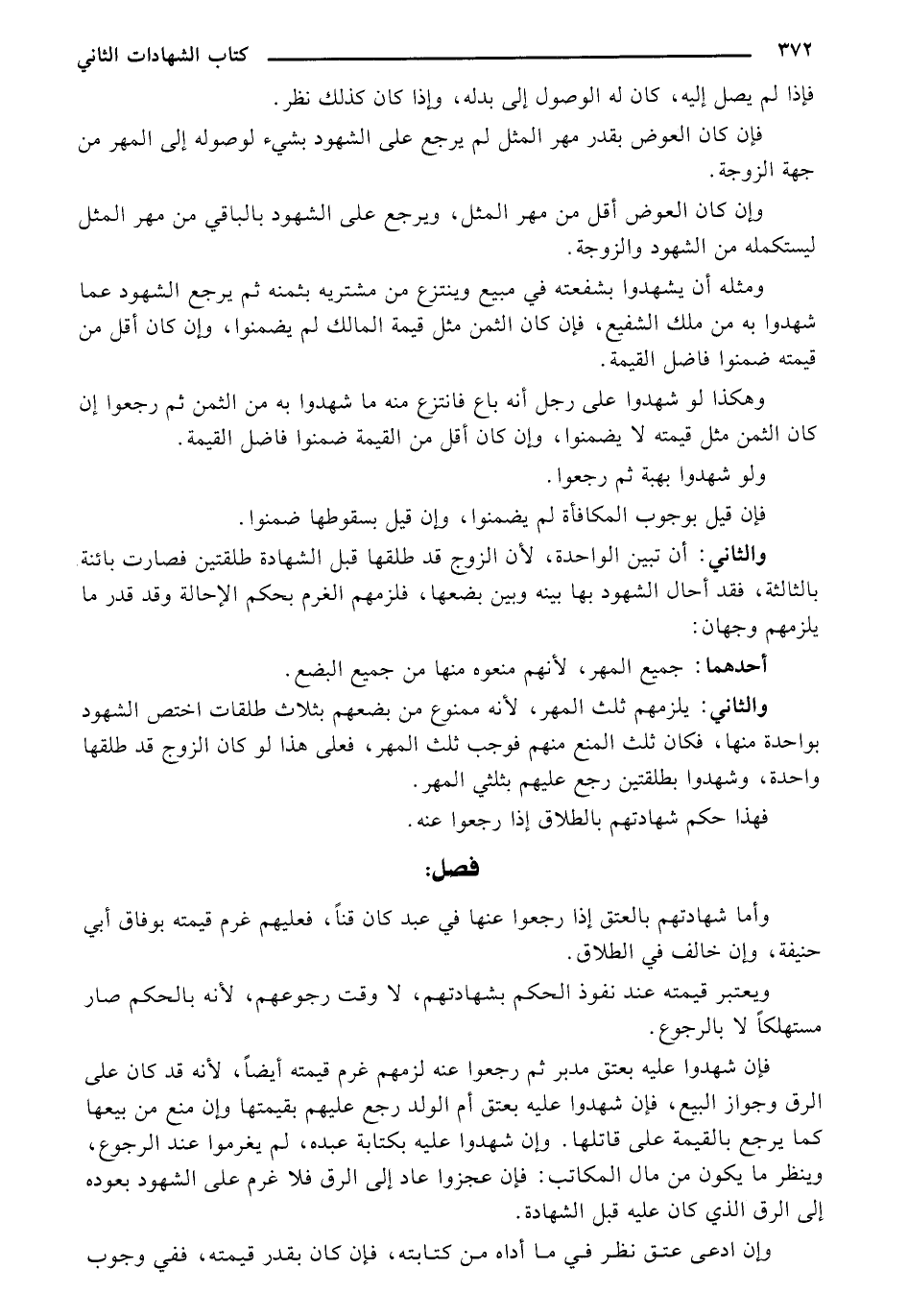 ومثله أن يشهدوا بشفعته في مبيع وينتزع من مشتريه بثمنه ثم يرجع الشهود عما شهدوا به من ملك الشفيع، فإن كان الثمن مثل قيمة المالك لم يضمنوا، وإن كان أقل من قيمته ضمنوا فاضل القيمة.