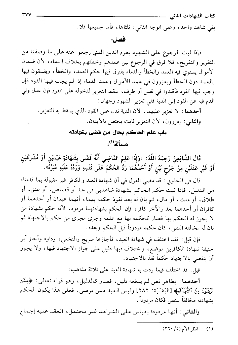 قال الشافعي رحمه الله: "وإذا علم القاضي أنه قضى بشهادة عبدين أو مشركين أو غير عدلين من جرحٍ بين أو أحدهما رد الحكم على نفسه ورده عليه غيره ".