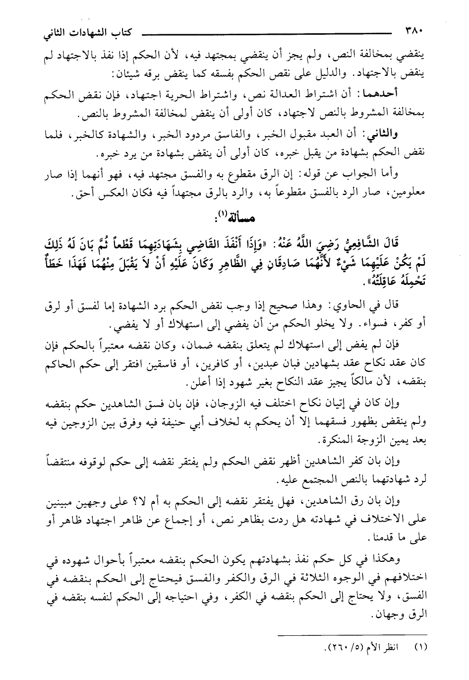 أحدهما: أن اشتراط العدالة نص، واشتراط الحرية اجتهاد، فإن نقض الحكم بمخالفة المشروط بالنص لاجتهاد، كان أولى أن ينقض لمخالفة المشروط بالنص.
