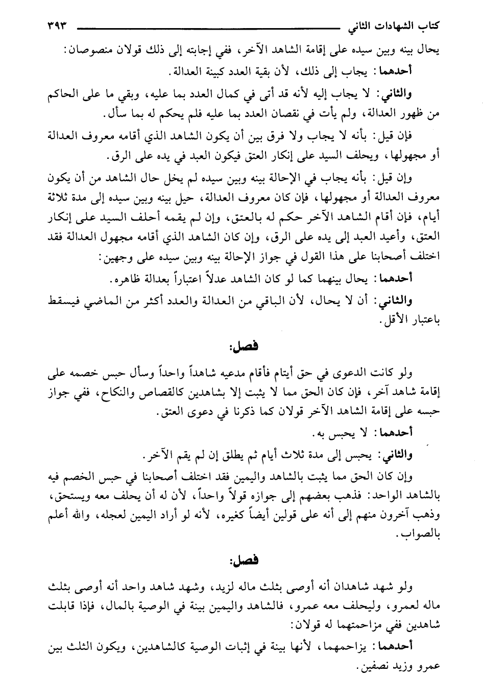 وإن كان الحق مما يثبت بالشاهد واليمين فقد اختلف أصحابنا في حبس الخصم فيه بالشاهد الواحد: فذهب بعضهم إلي جوازه قولًا واحدًا، لأن له أن يحلف معه ويستحق، وذهب آخرون منهم إلي أنه على قولين أيضًا كغيره، لأنه لو أراد اليمين لعجله، والله أعلم بالصواب.