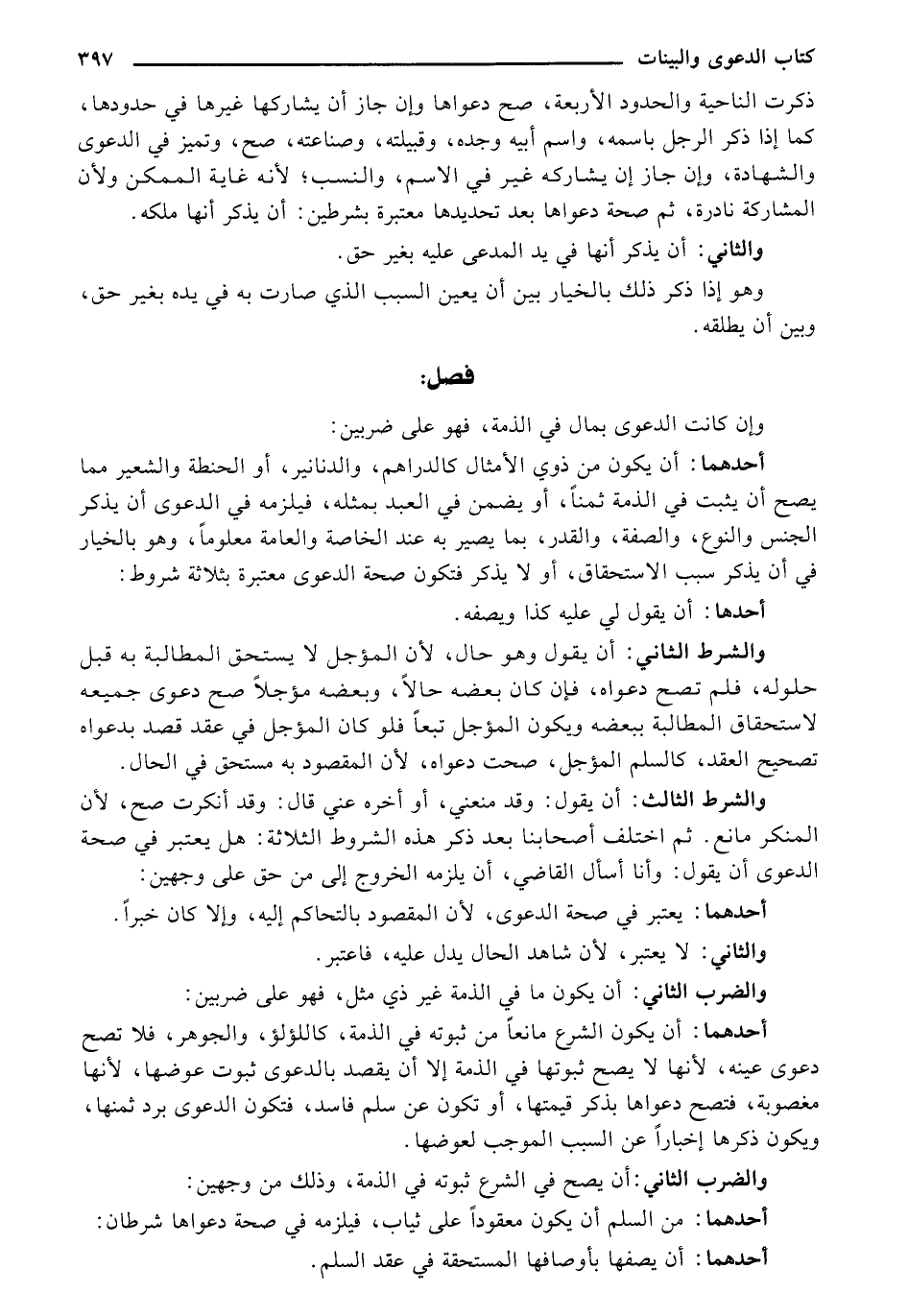 والشرط الثاني: أن يقول وهو حال، لأن المؤجل لا يستحق المطالبة به قبل حلوله، فلم تصج دعواه، فإن كان بعضه حالًا، وبعضه مؤجلًا صح دعوى جميعه لاستحقاق المطالبة ببعضه ويكون المؤجل تبعًا فلو كان المؤجل في عقد قصد بدعواه تصحيح العقد، كالسلك المؤجل، صحت دعواه، لأن المقصود به مستحق في الحال.